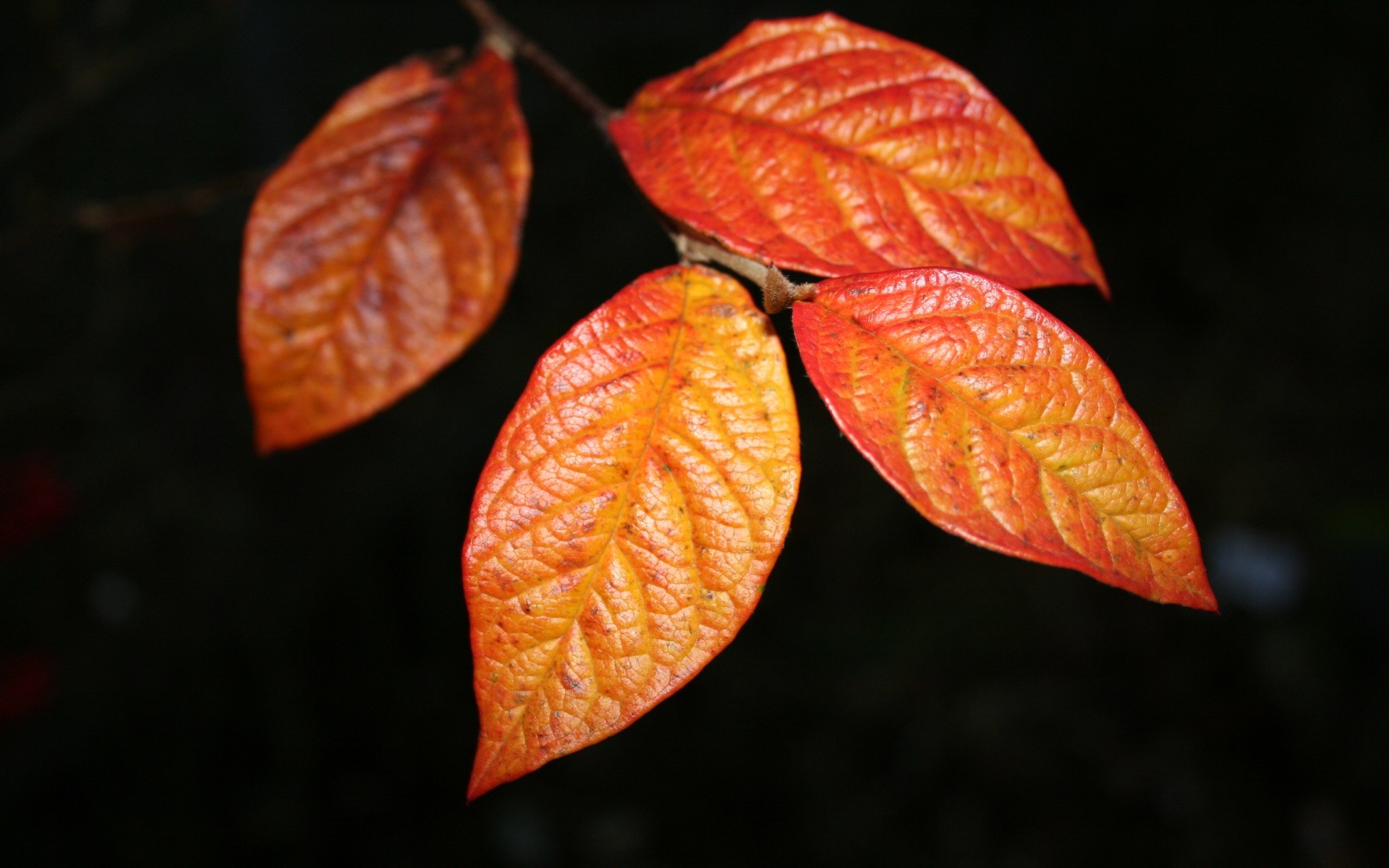 Blätter auf Zweigen auf verschwommenem Hintergrund
