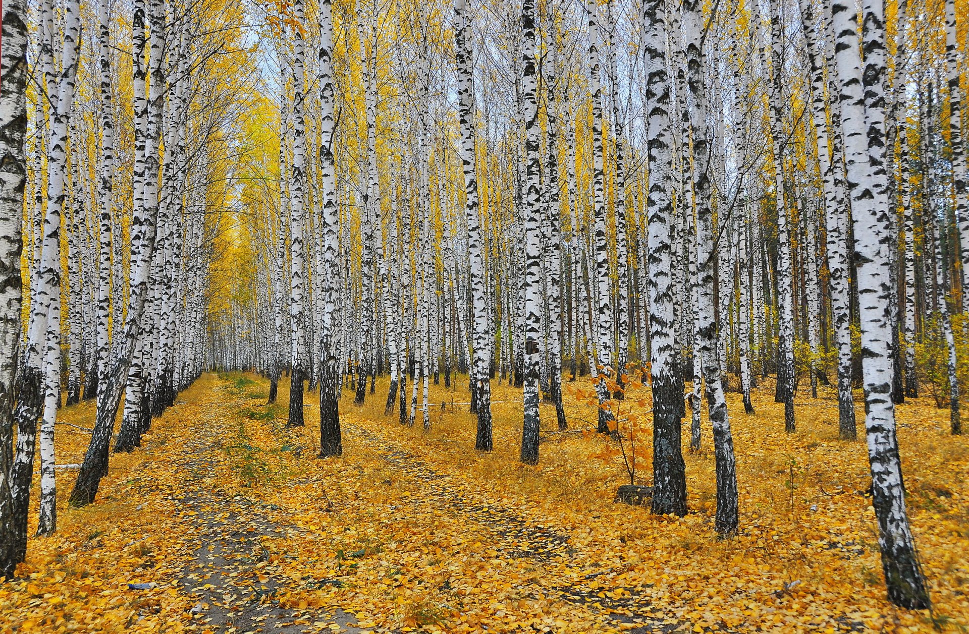 Herbstlandschaft Natur Birke mit gelben Blättern