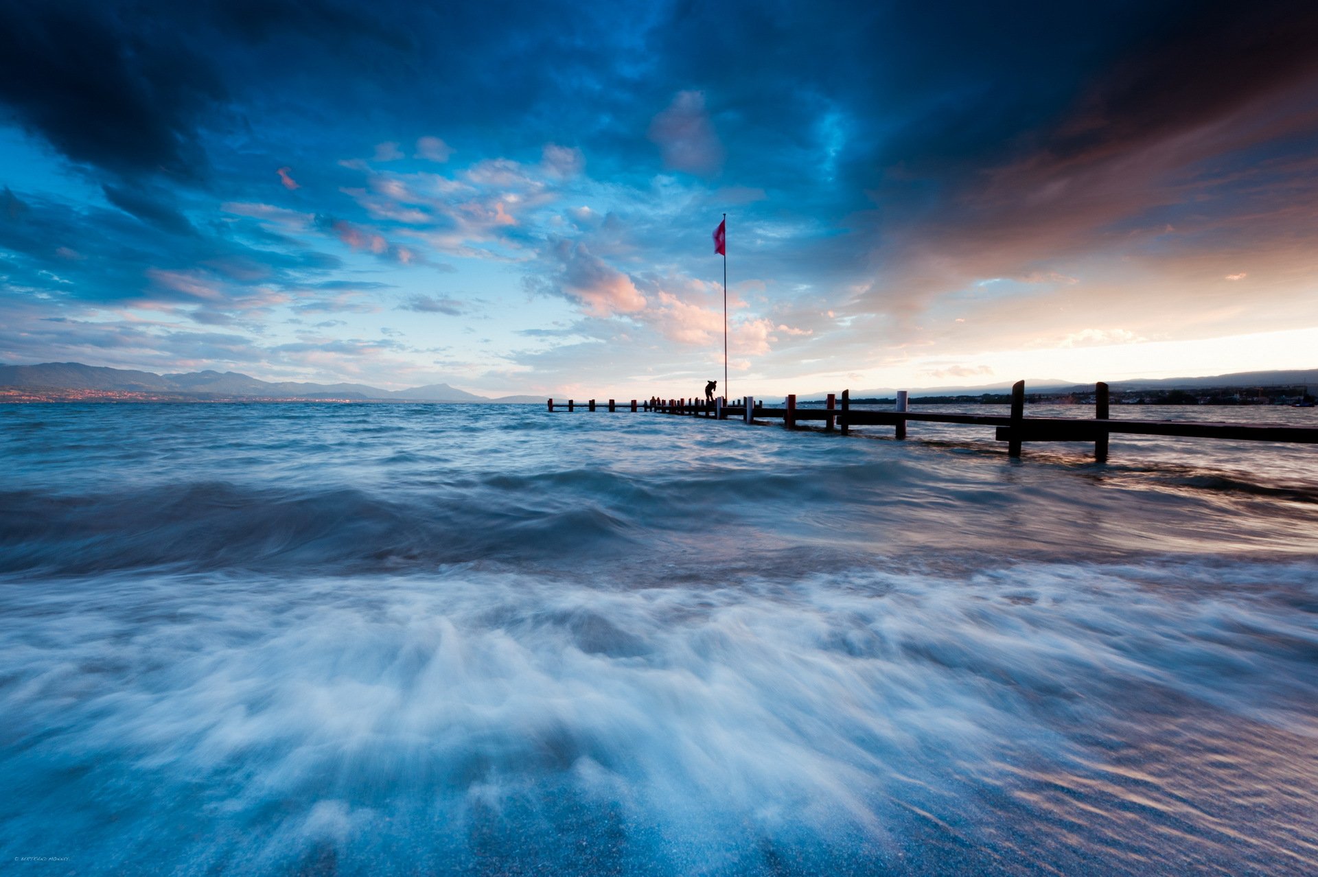 Die herrliche landschaft der brücke, die ins meer hinausgeht