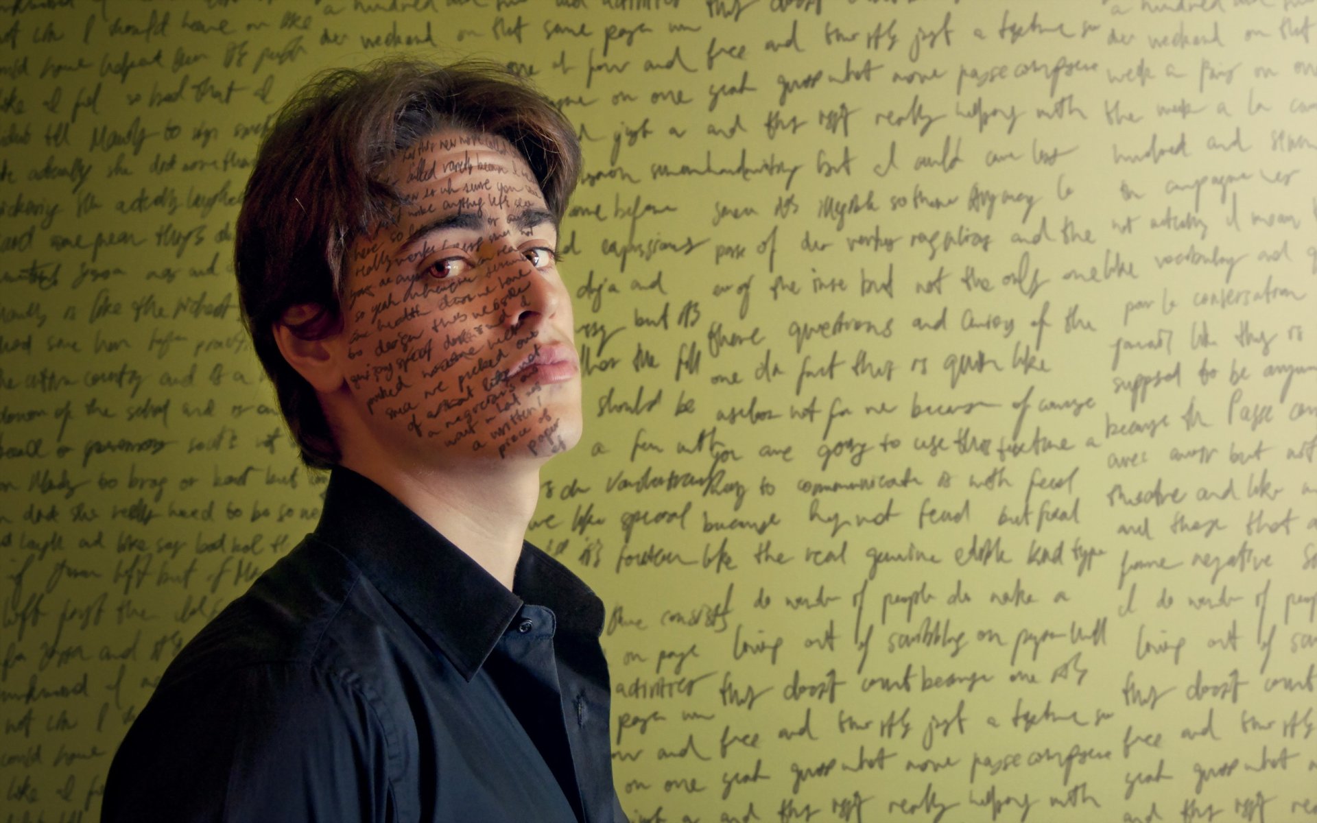 Der blick des hundes auf dem hintergrund der fliegenden federnDer Blick des Hundes auf dem Hintergrund der fliegenden Federn