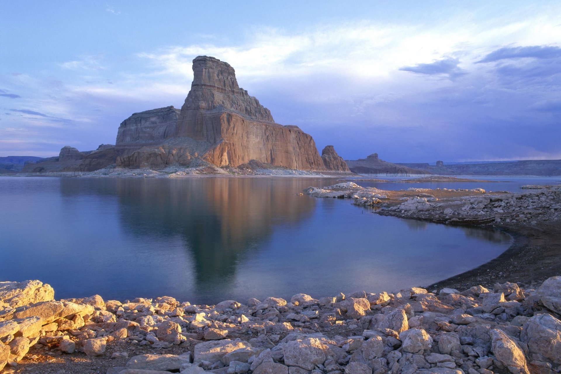 Steinspitzen spiegeln sich im See wider