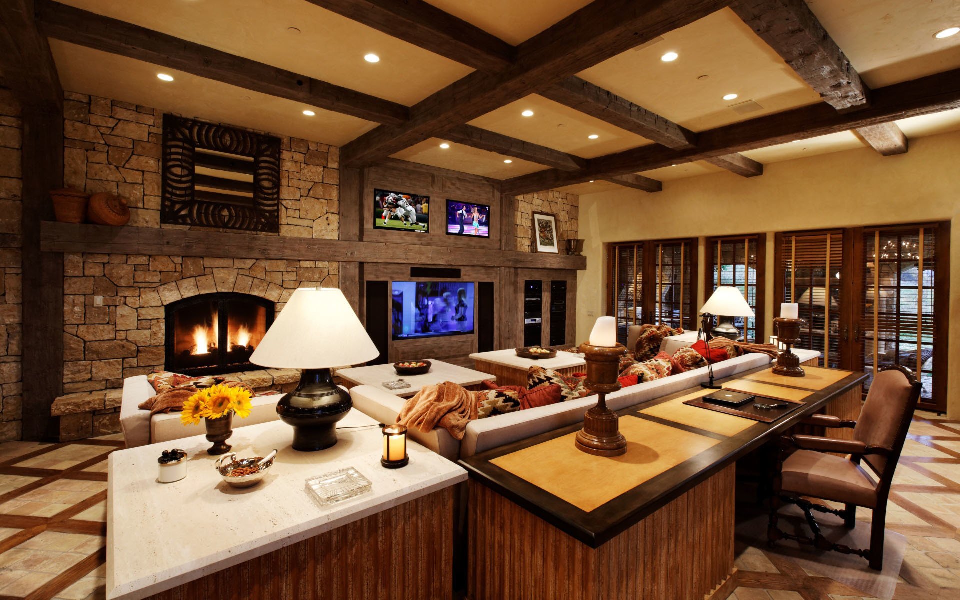 Das Innere des Schlafzimmers in Gelb-Schwarz