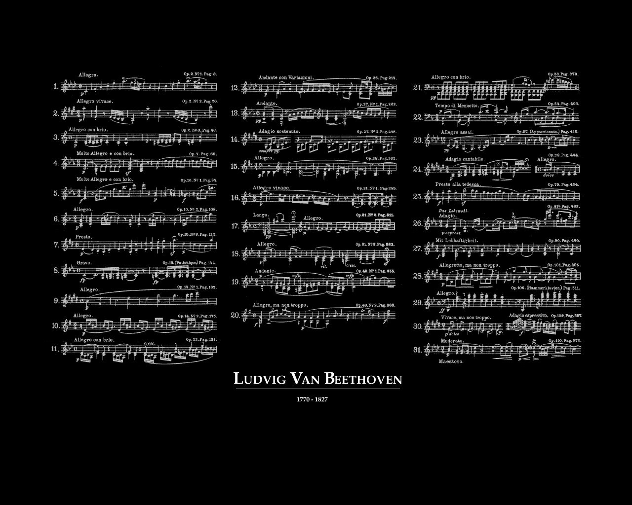 Ludwig van Beethovens Notenwerk auf schwarzem Hintergrund