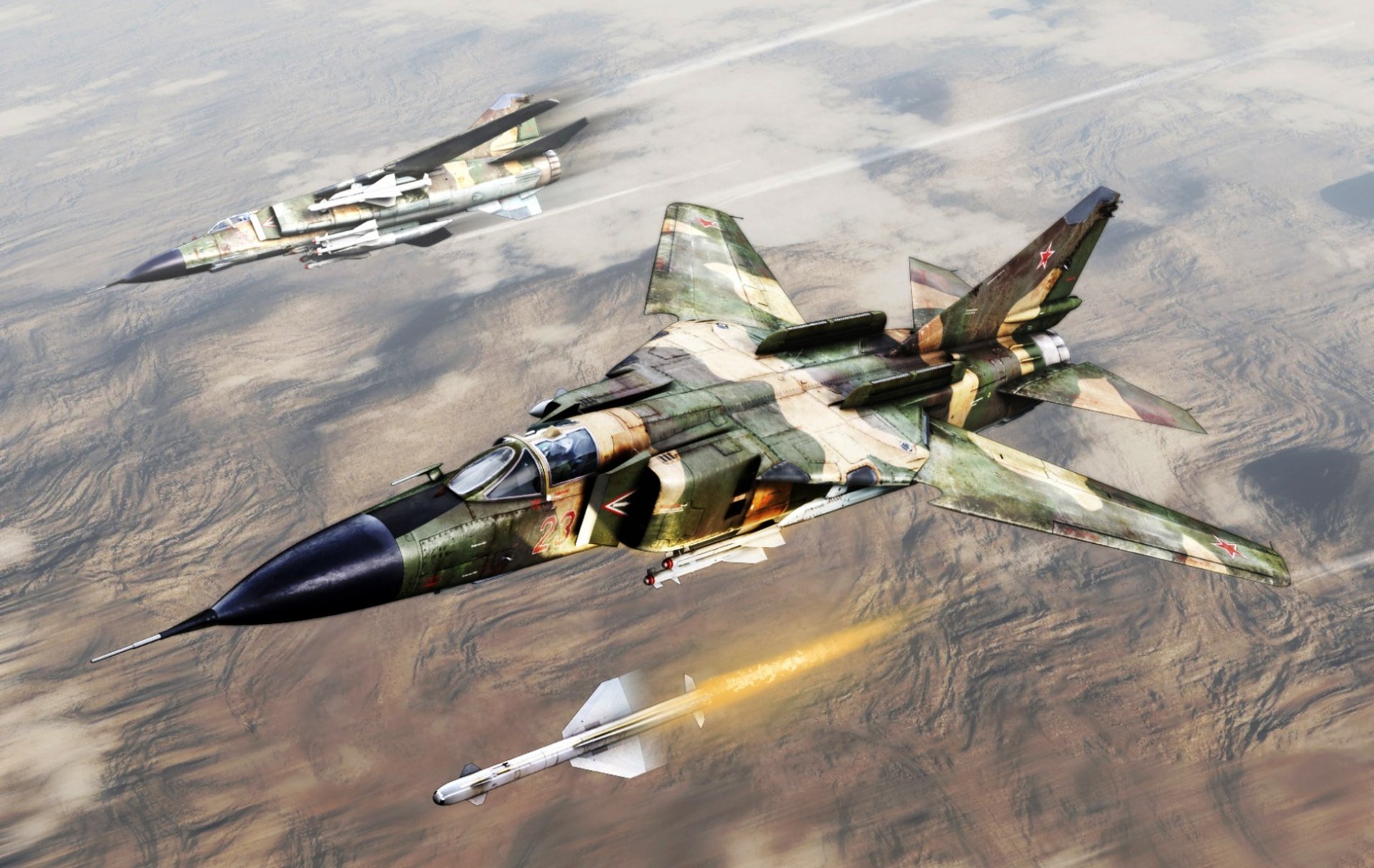 Sowjetischer Mig-23-Kämpfer feuert eine Rakete ab