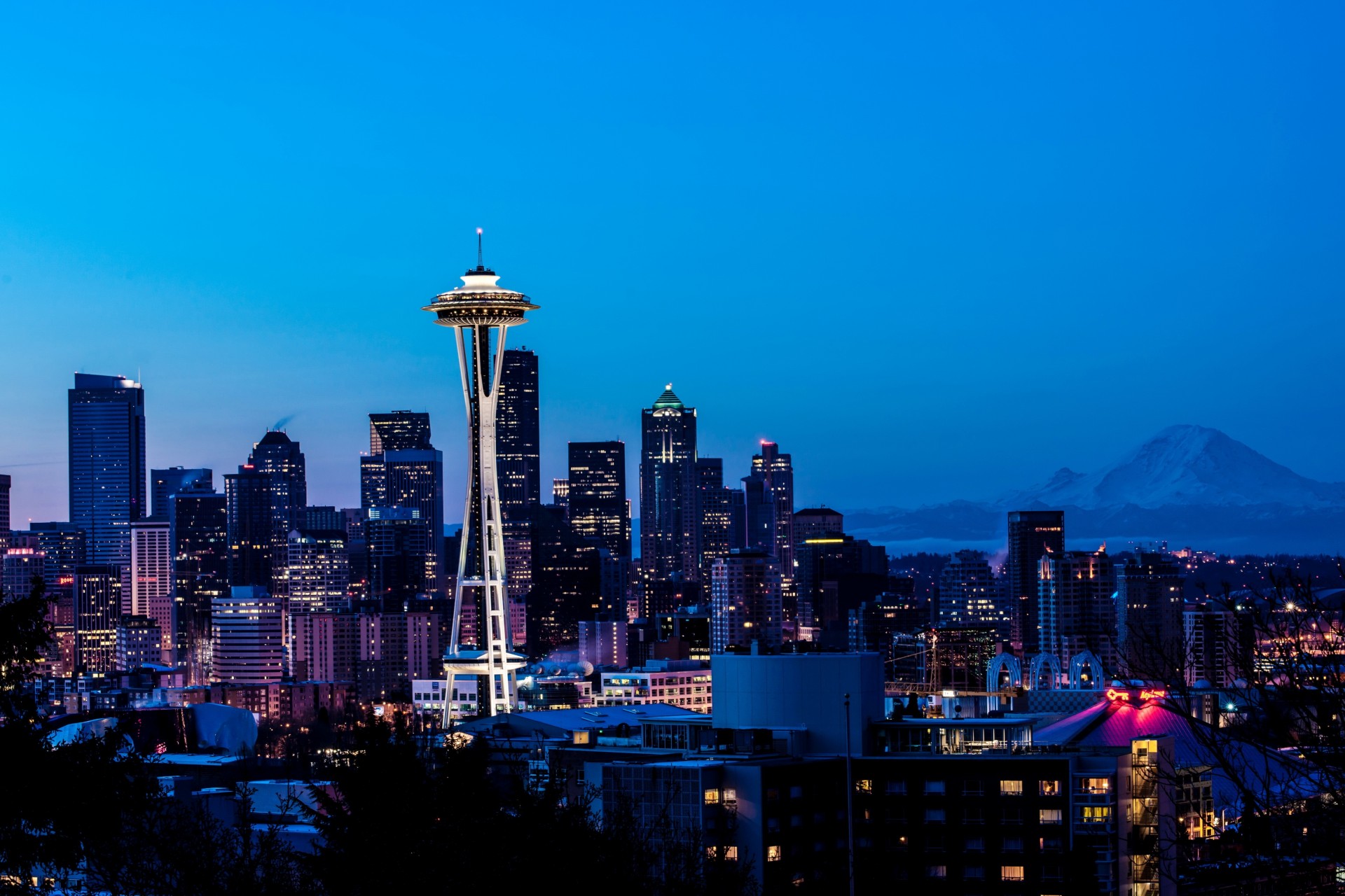 Sonnenuntergang über einer großen Metropole in den USA