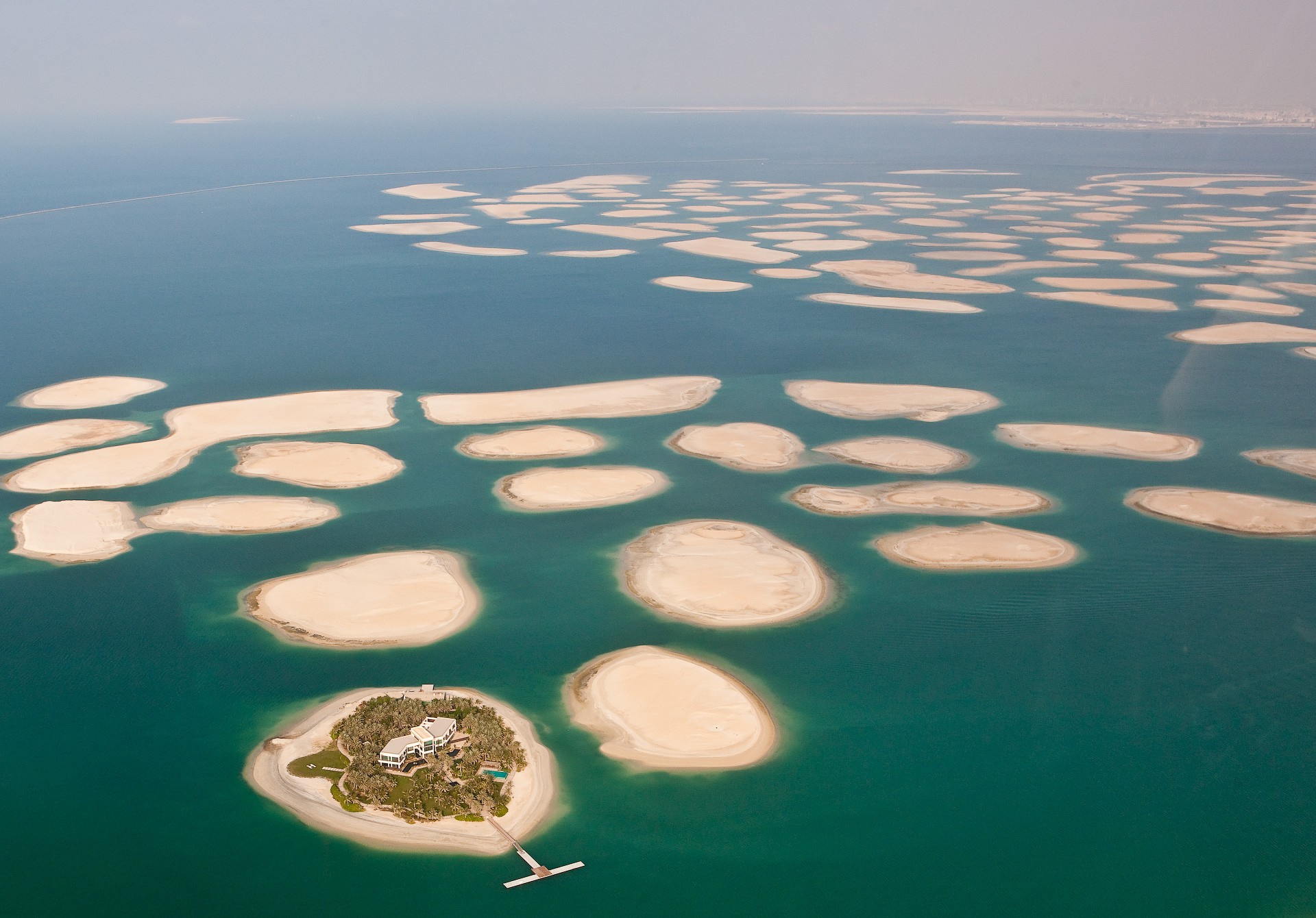 Künstlich vom Menschen geschaffene Inseln in Form einer Palme