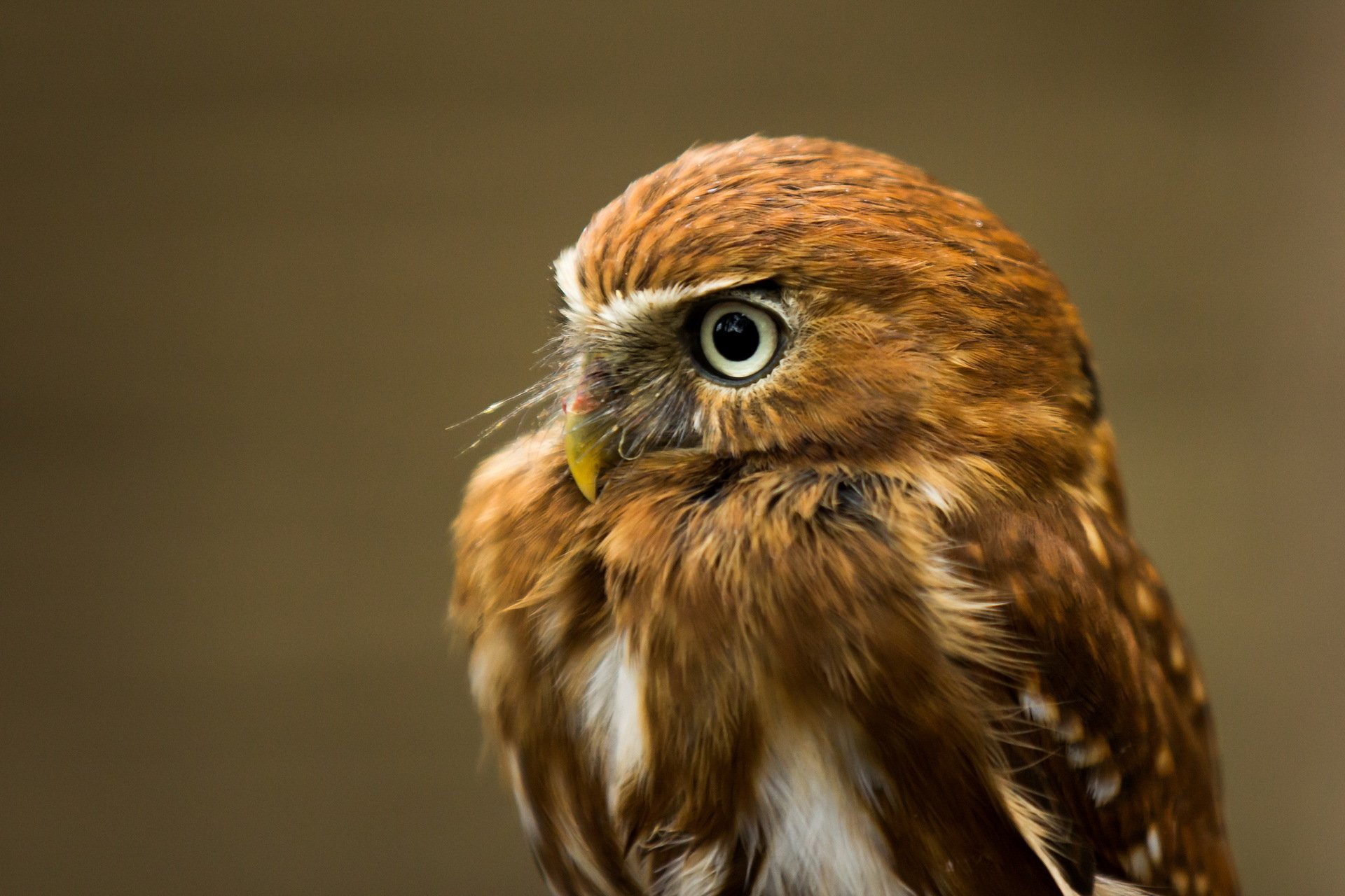 Ein Eulenvogel, der auf einem Hanf sitzt, mit ausgestreckten Flügeln