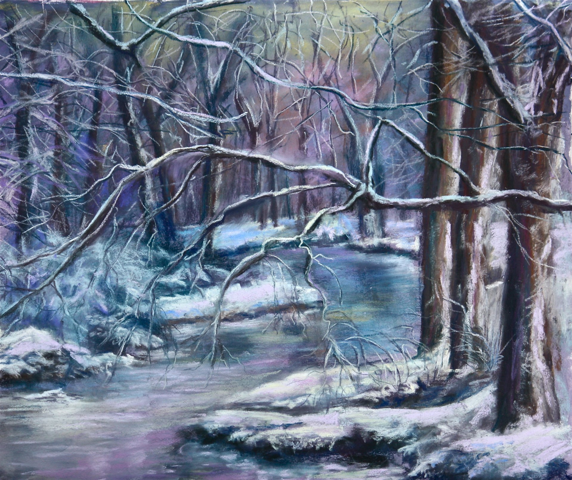Grafische Zeichnung eines Schlosses im Wald im Winter