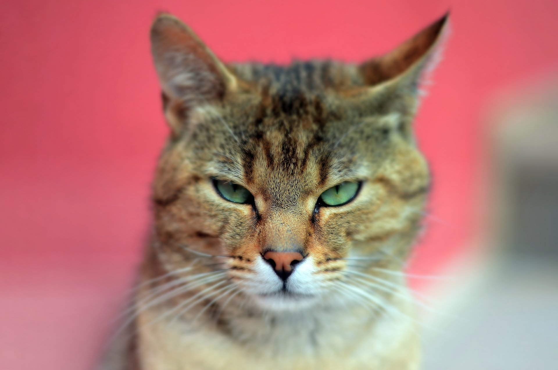 Eine Katze mit riesigen Augen sitzt auf einem Baum