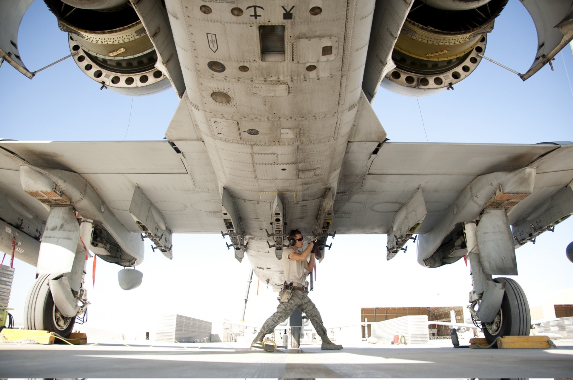 Flugzeug grau nebenan bereitet sich ein Mann auf den Flug vor