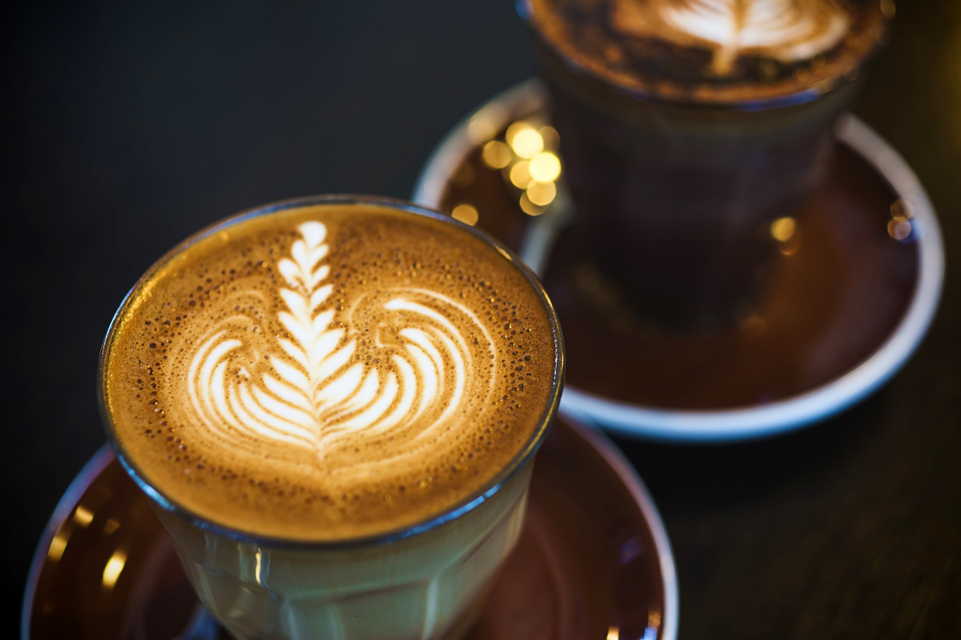 Weißes emblem des kaffeehauses auf grünem hintergrundWeißes Emblem des Kaffeehauses auf grünem Hintergrund