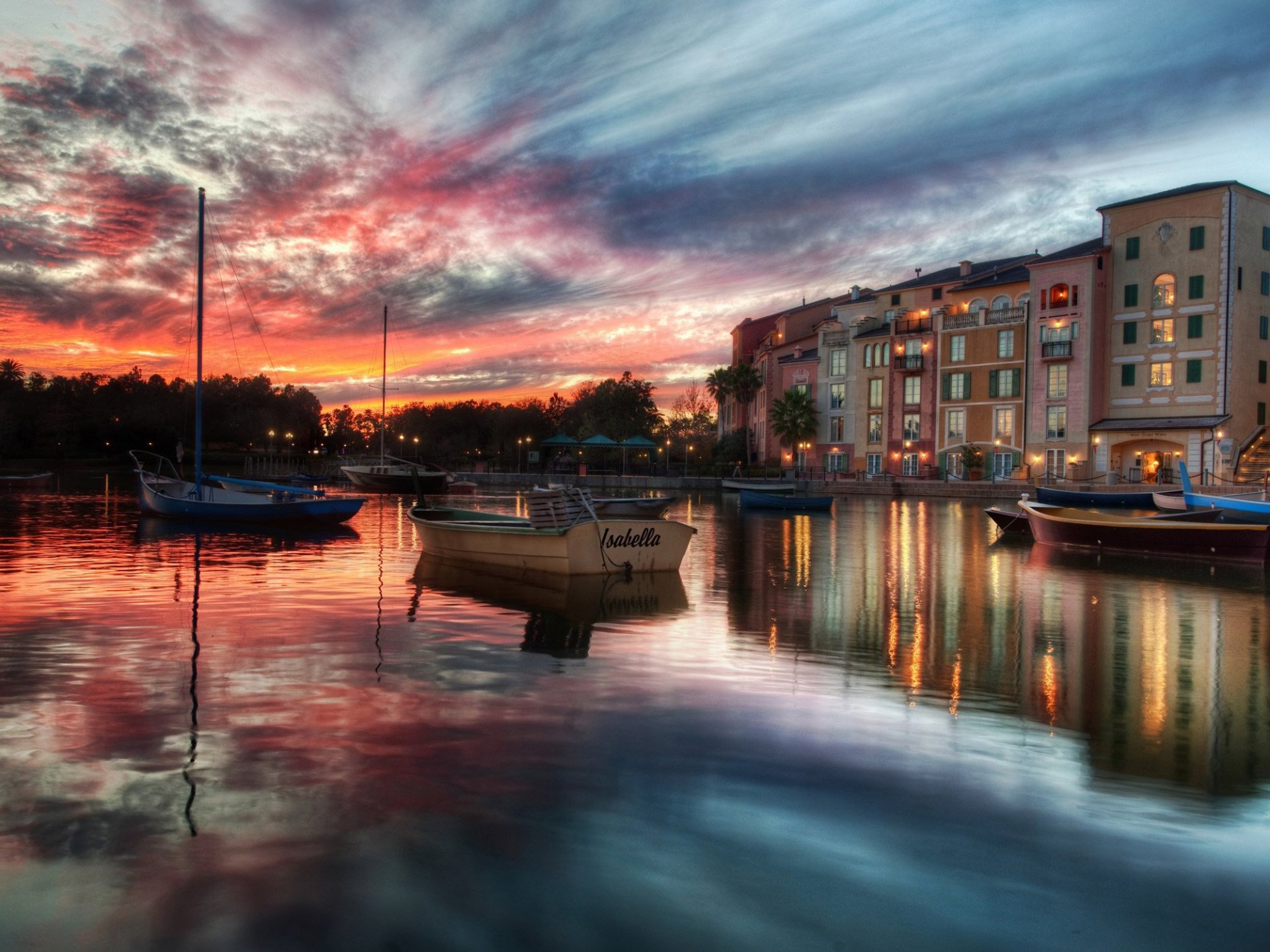 Außergewöhnlicher himmel und häuser in wasserreflexionAußergewöhnlicher Himmel und Häuser in Wasserreflexion