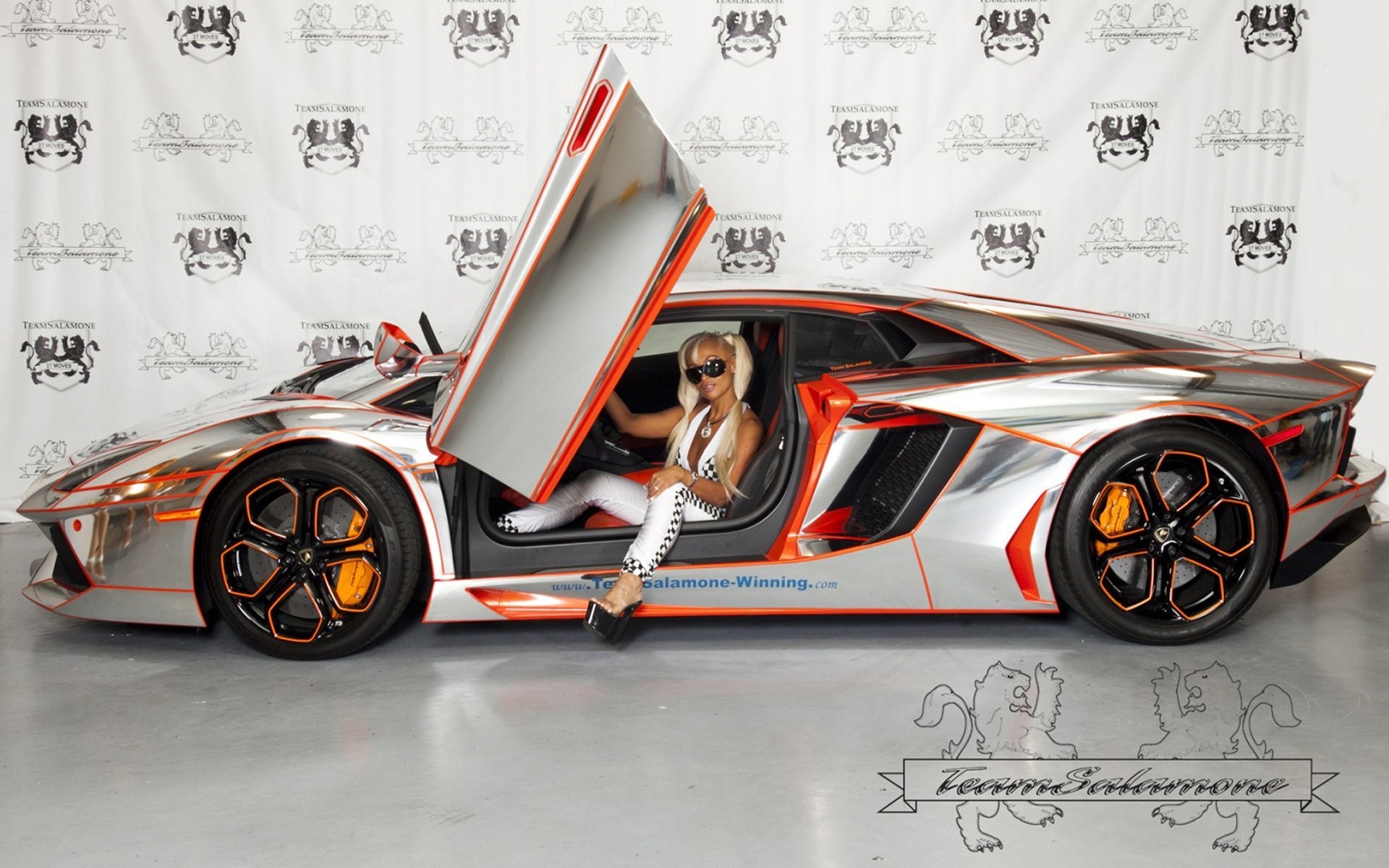 Lamborghini Sportwagen und Kämpfer konkurrieren um Geschwindigkeit