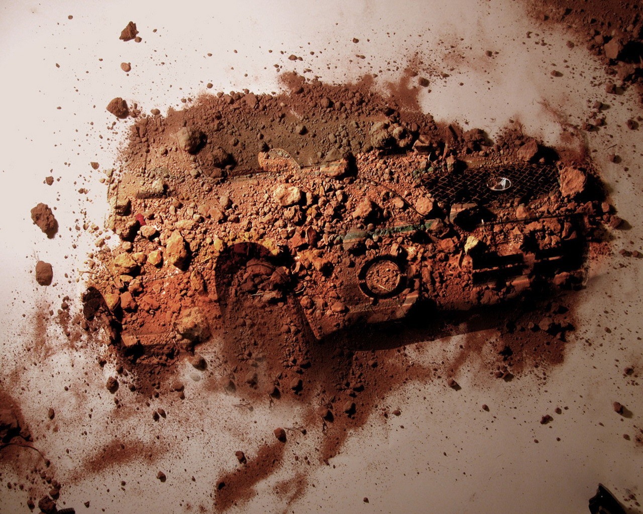 Schöne Schubkarre beim Driften, Staub in die ganze Richtung