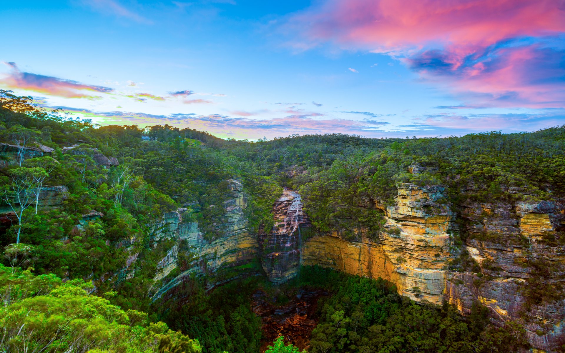 Mächtiger Wasserfall in der Schlucht einer verträumten Welt