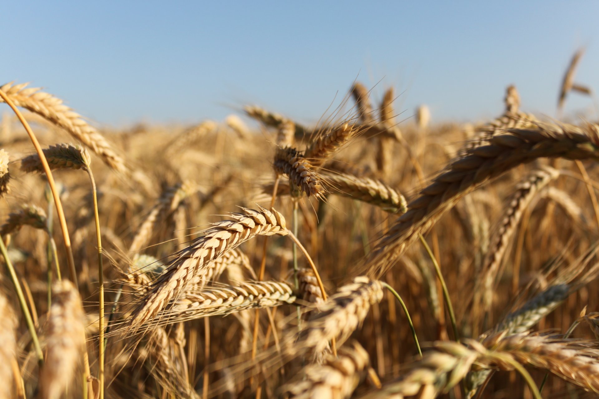 Ein Hund in einem orangefarbenen Halsband im Feld