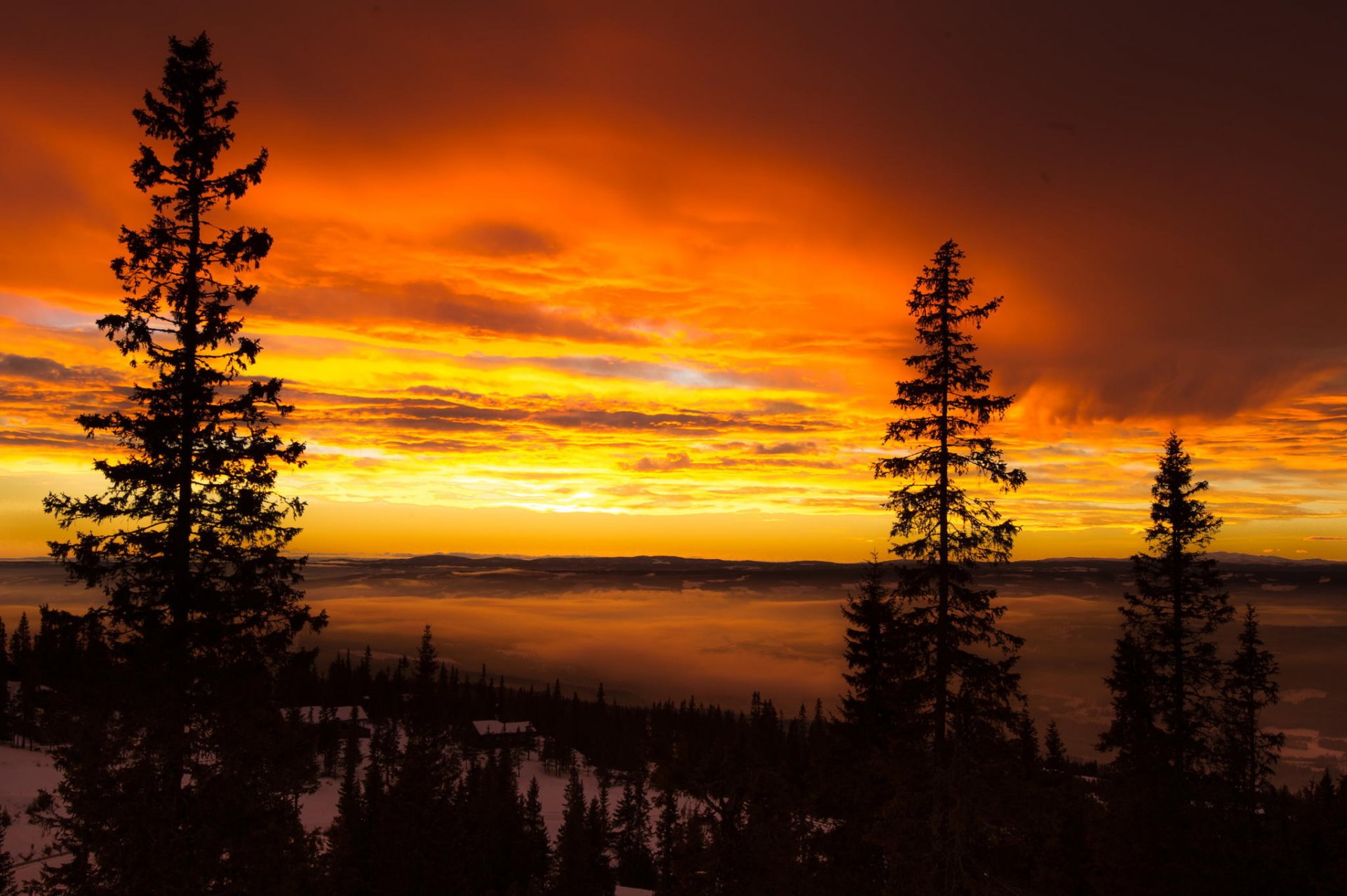 Landschaft der Morgendämmerung mit Bäumen und Wolken