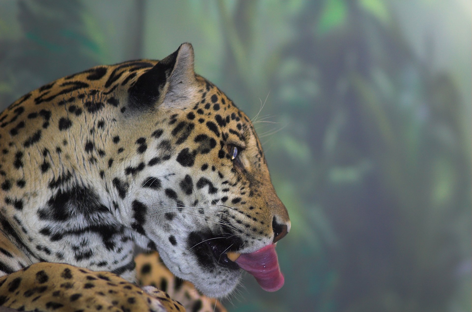 Jaguar zeigt lange Zunge