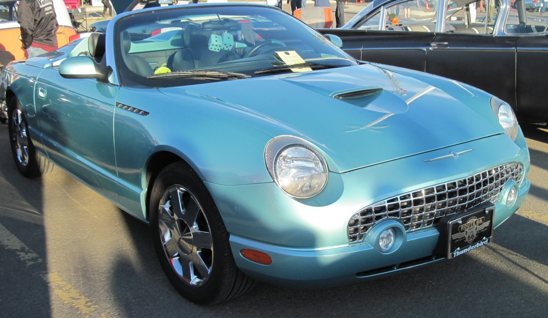 Blaues Ford Cabrio mit runden Scheinwerfern