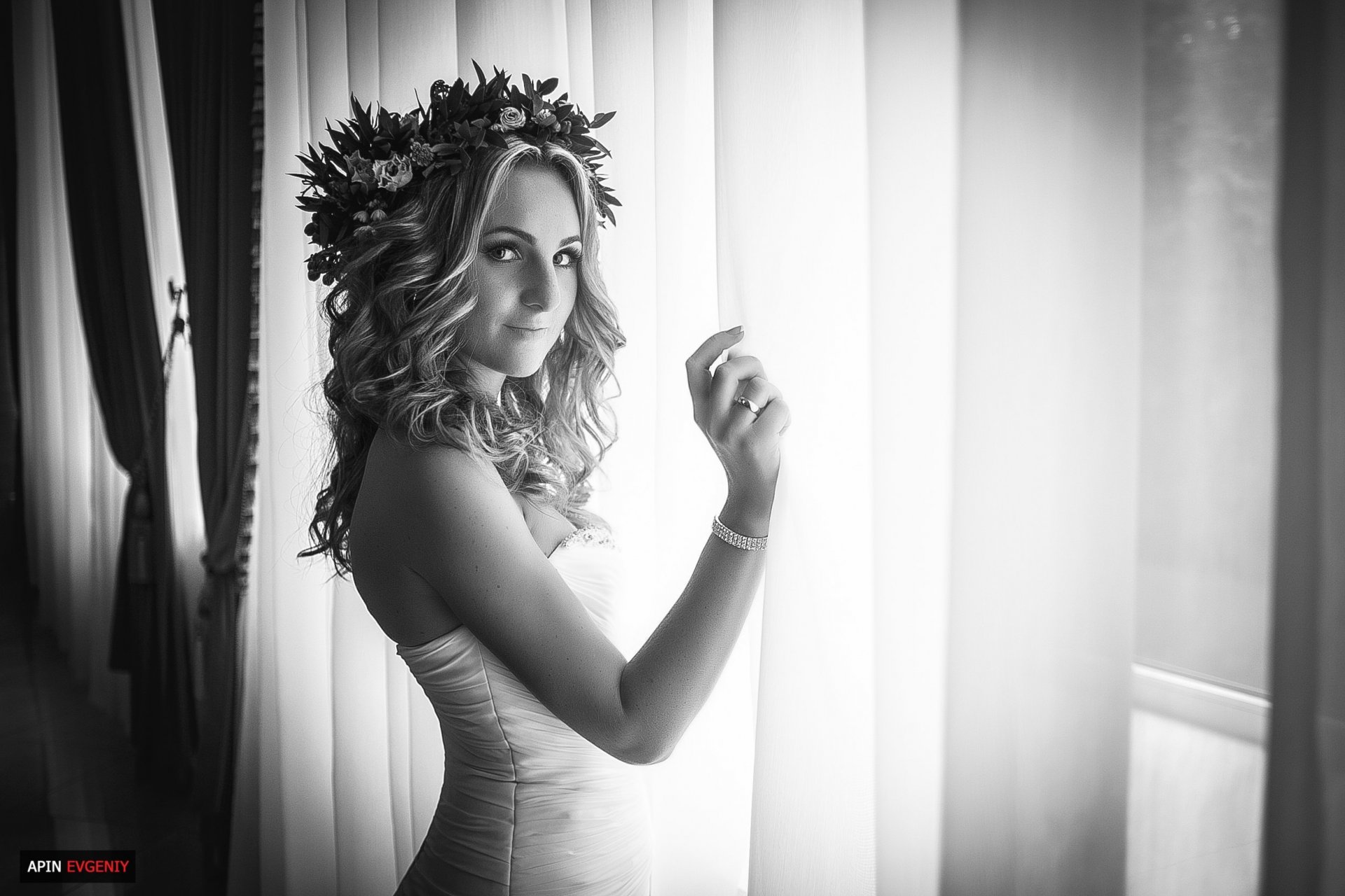 Schwarz-Weiß-Foto eines Mädchens in einem Kranz