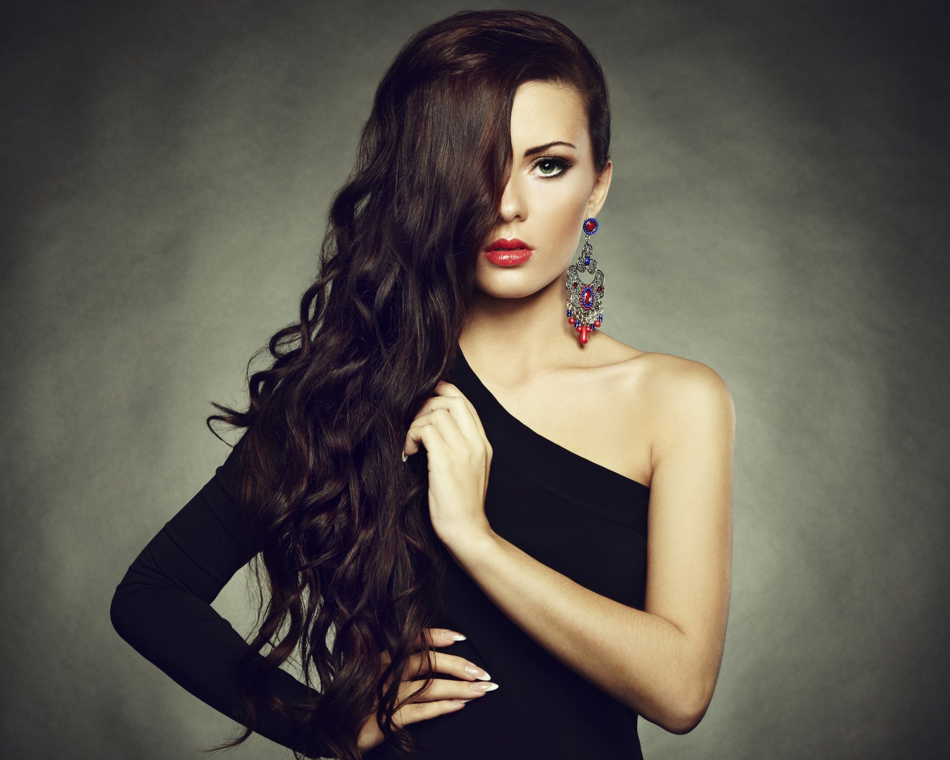 Schönes Mädchen mit Make-up auf einem einfarbigen Hintergrund