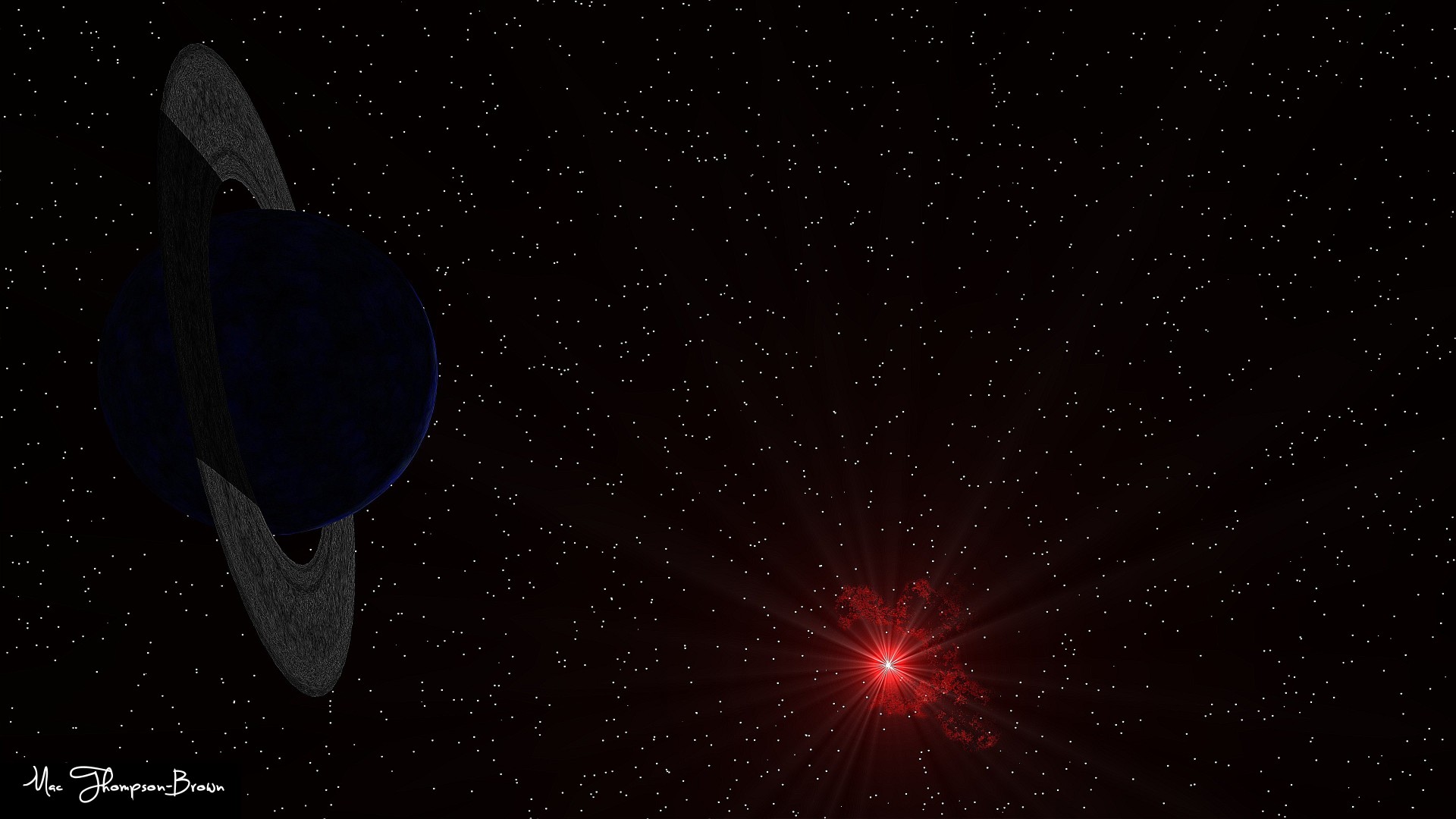 Fantastische Kunst über den Kosmos in 3d heller roter Blitz