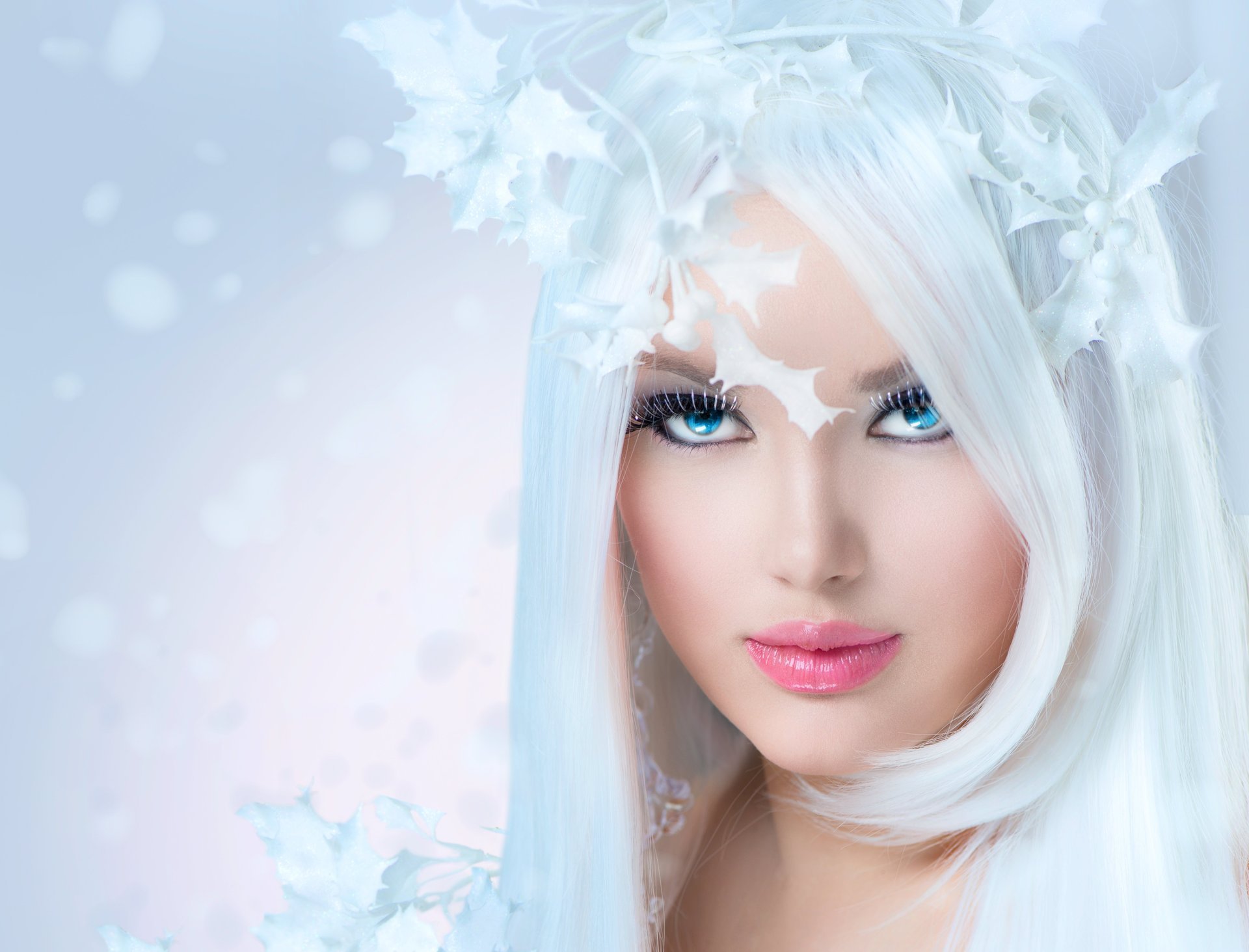 Schöner Blick einer Blondine mit rotem Lippenstift