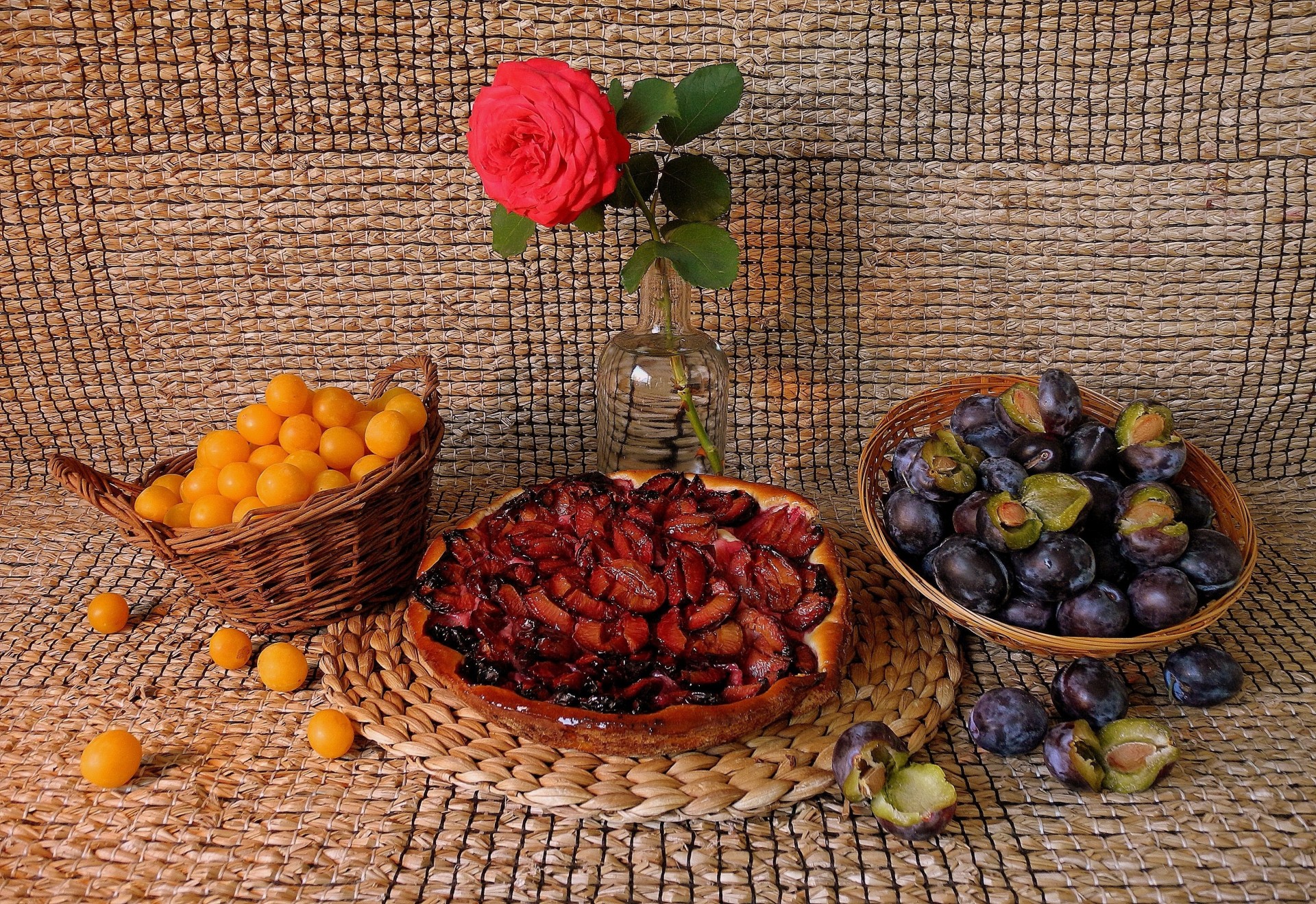 Fruchtige landschaft mit roter rose für stilllebenFruchtige Landschaft mit roter Rose für Stillleben