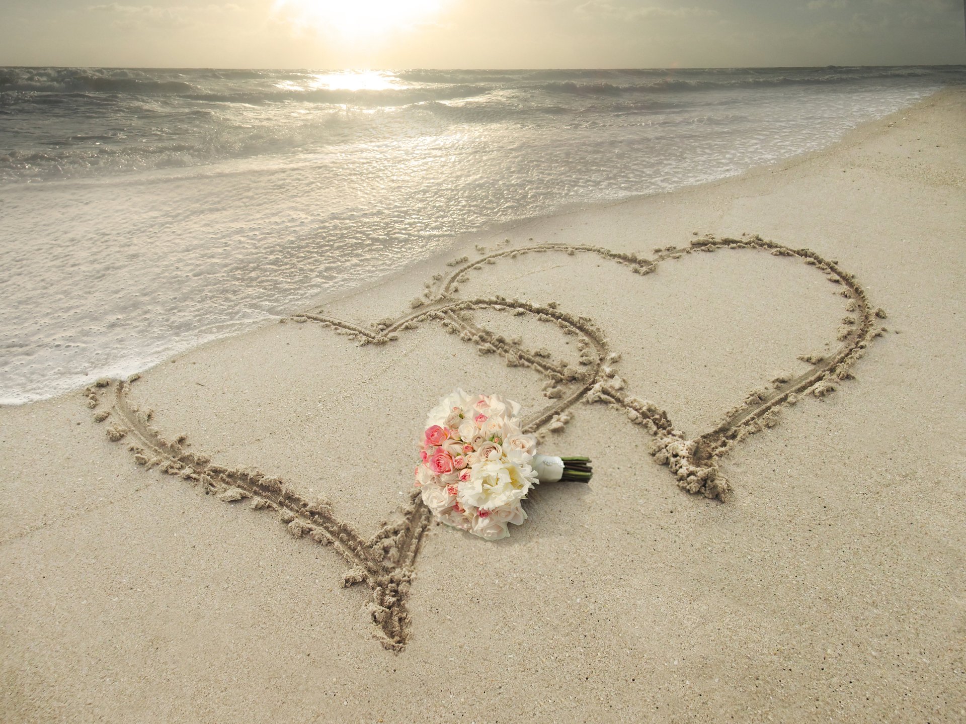 Zwei Herzen am Sandstrand gemalt