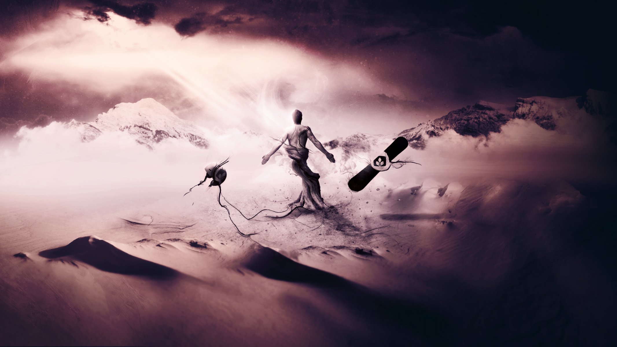 Kreative tapete mit einem mann auf einem snowboardKreative Tapete mit einem Mann auf einem Snowboard