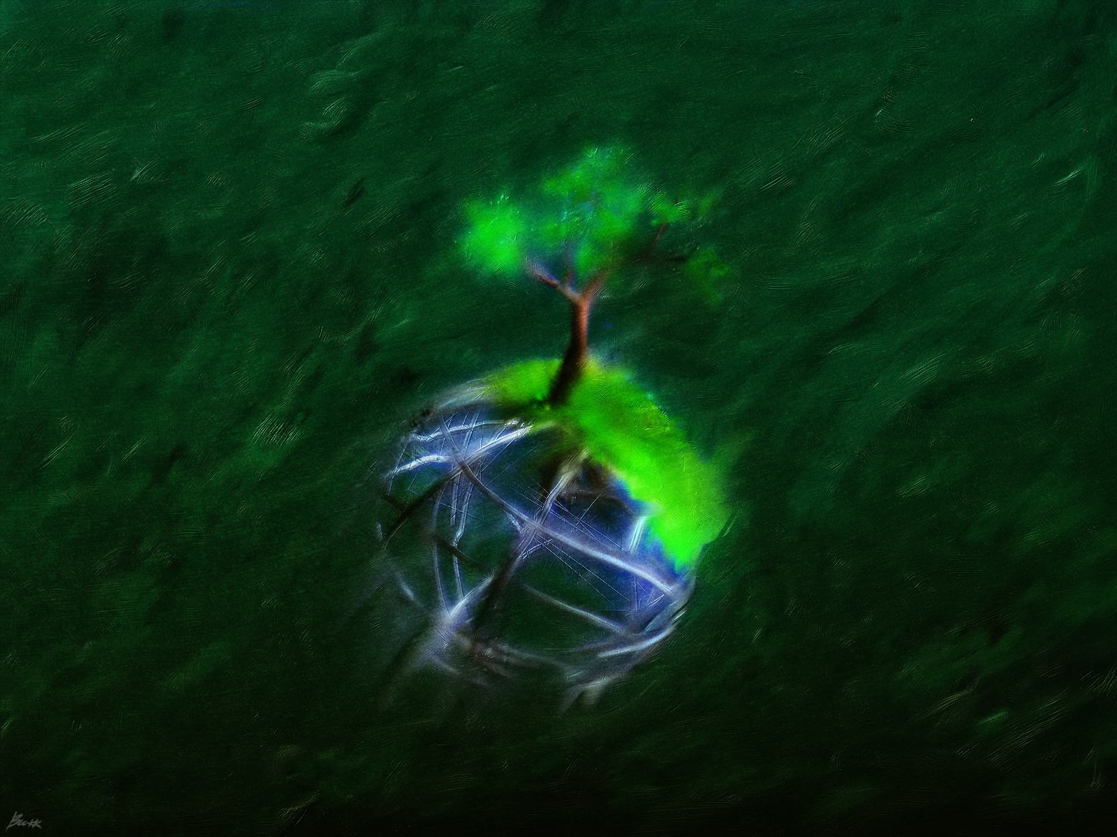 Baum mit grüner krone auf verschwommenem hintergrundBaum mit grüner Krone auf verschwommenem Hintergrund