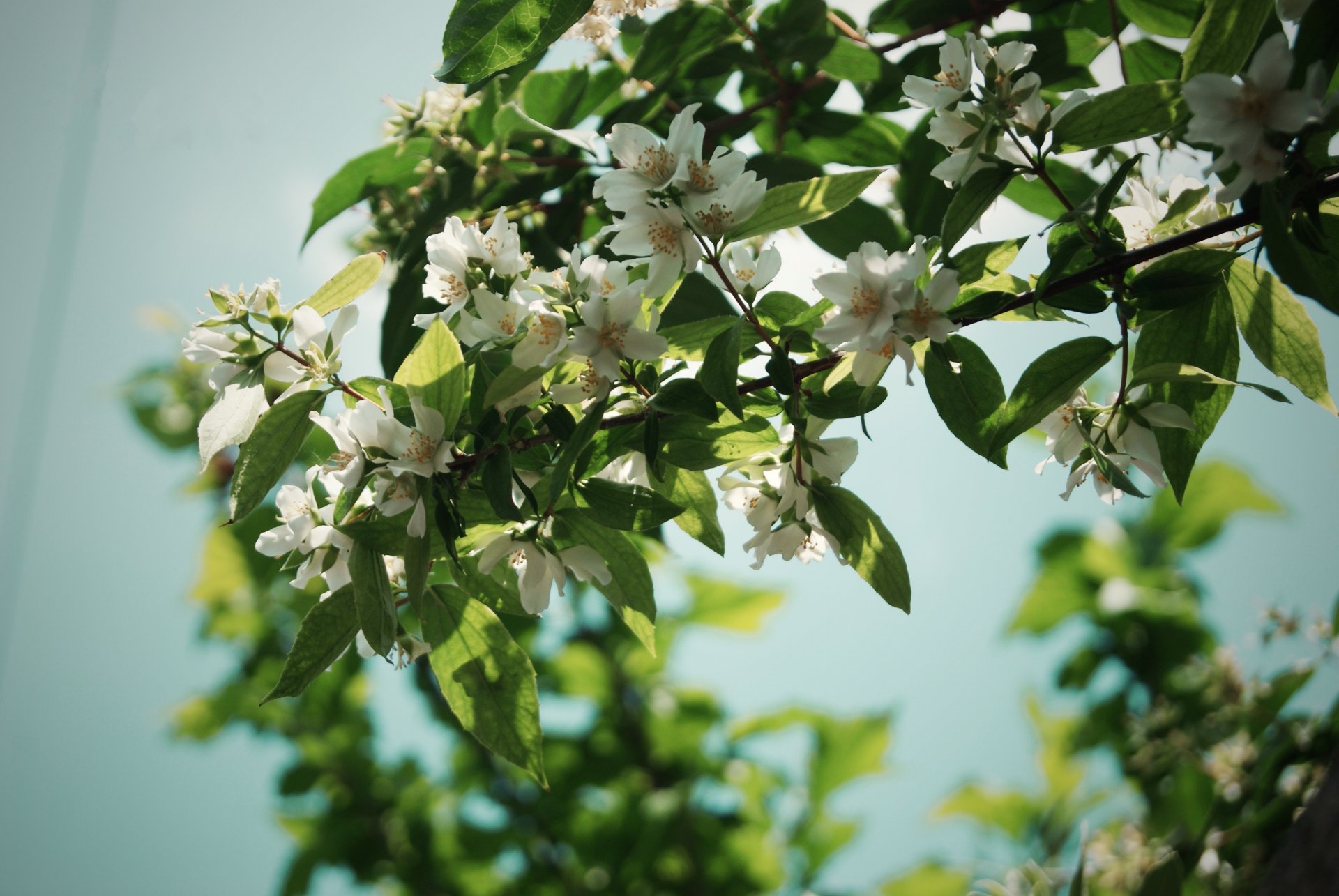 Baum mit Blättern wie im Märchen ist der Himmel blau-blau