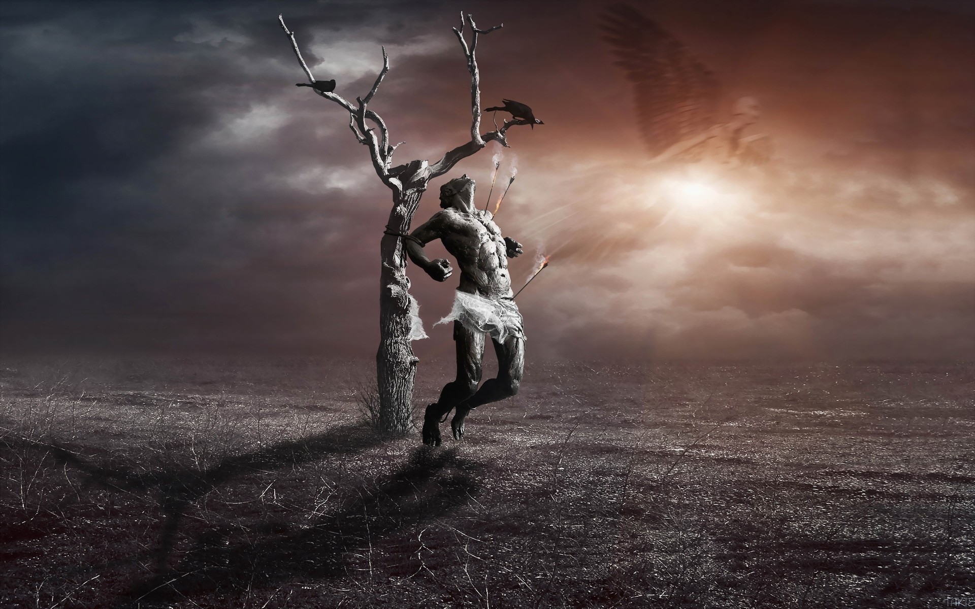 Auf dem boden steht ein mann mit einer großen kanone auf der schulterAuf dem Boden steht ein Mann mit einer großen Kanone auf der Schulter