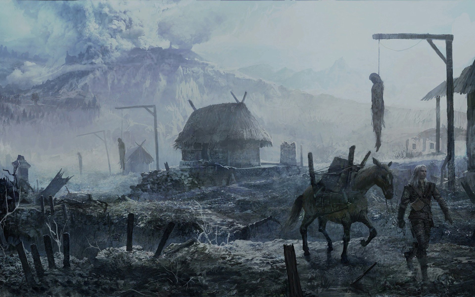 Hexenmeister. massaker im Dorf. Herald. Kunst