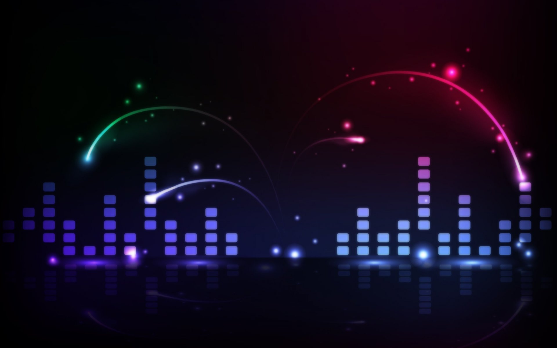 Mehrfarbige Linien mit Lichtern auf schwarzem Hintergrund