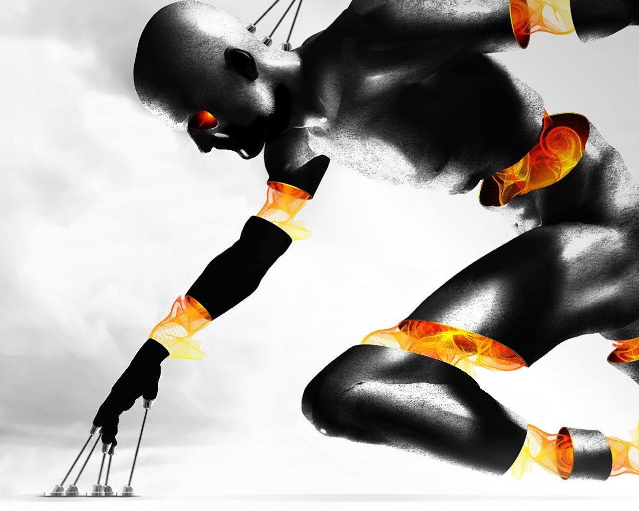 Kiperbes und der jäger vor dem hintergrund eines vulkansKiperbes und der Jäger vor dem Hintergrund eines Vulkans