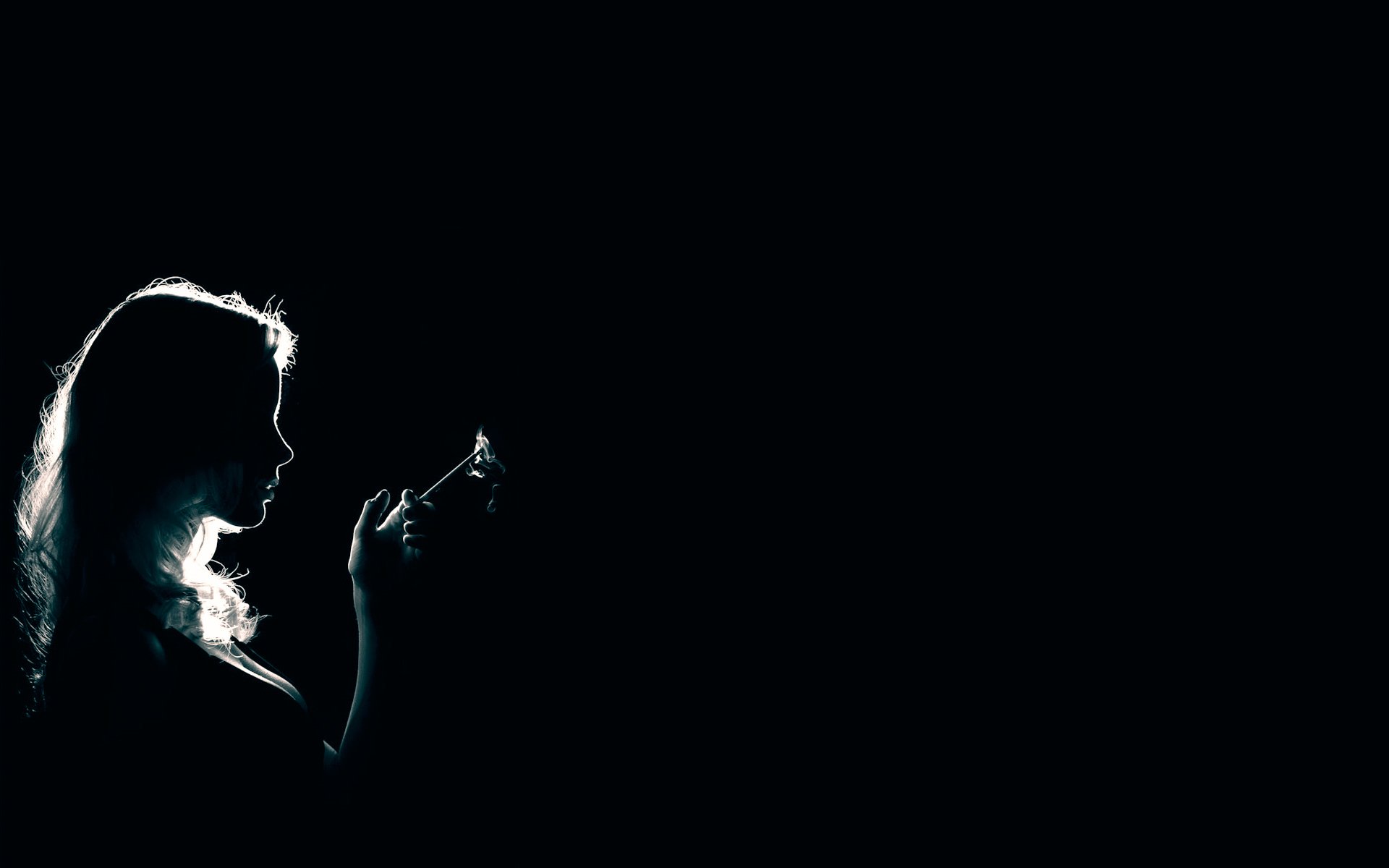 Profil eines mädchens mit einer zigarette auf dunklem hintergrundProfil eines Mädchens mit einer Zigarette auf dunklem Hintergrund