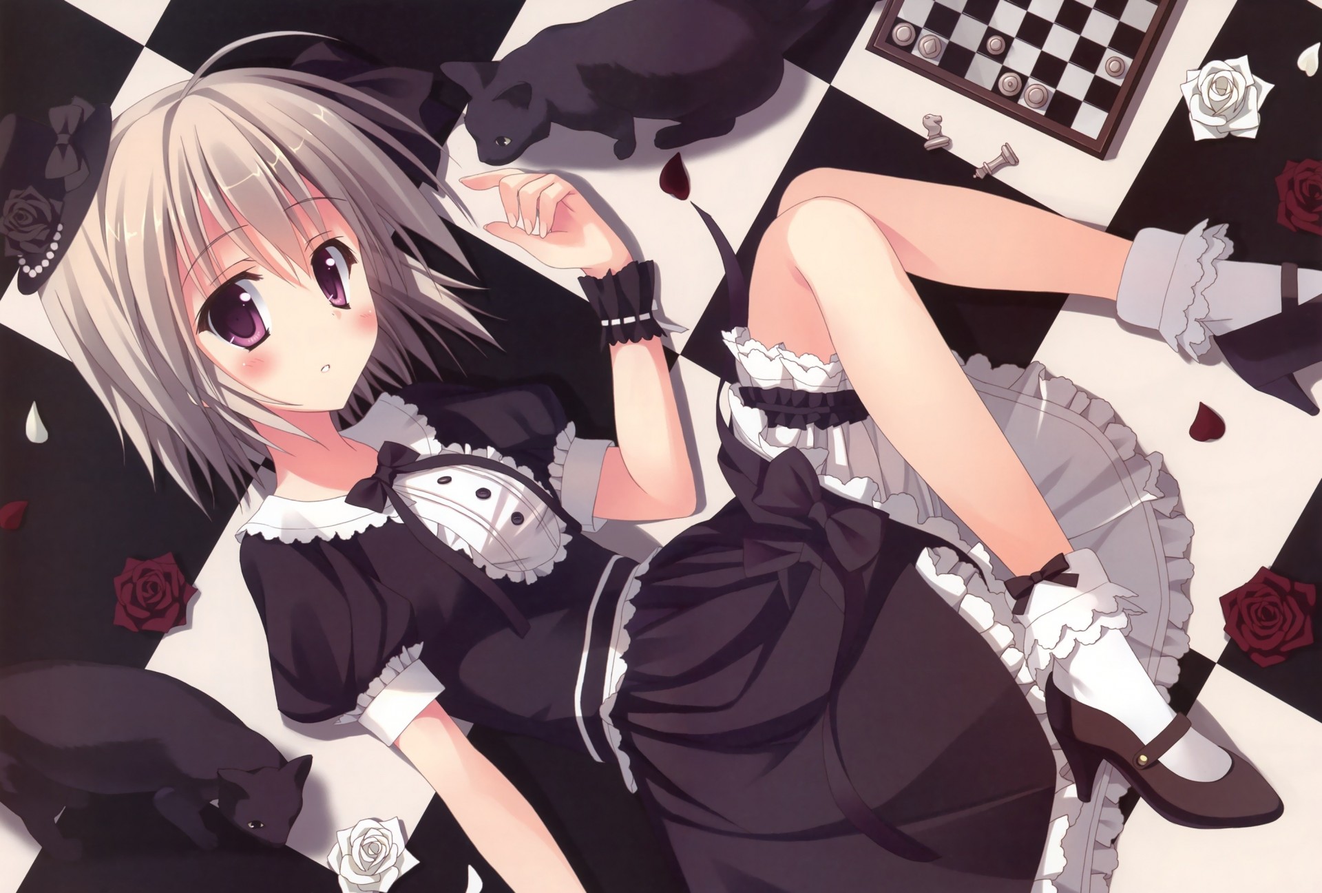 Mädchen in weiß mit rosa Haaren und schwarzer Feder