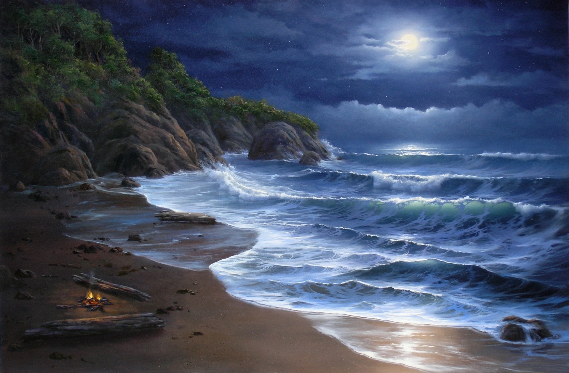 Lagerfeuer am Meer Nacht