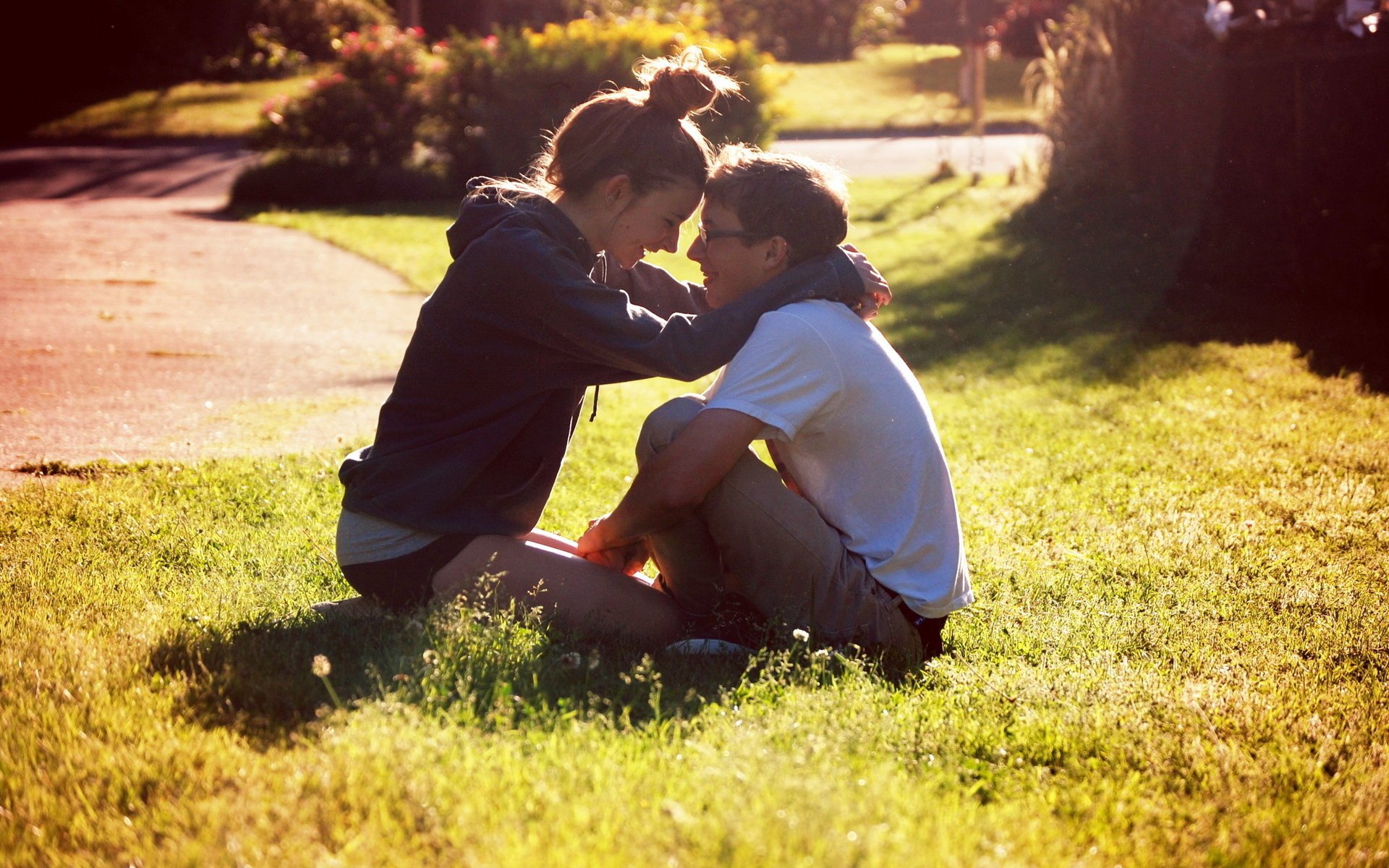 Ein Date auf dem Rasen im Park außerhalb der Stadt