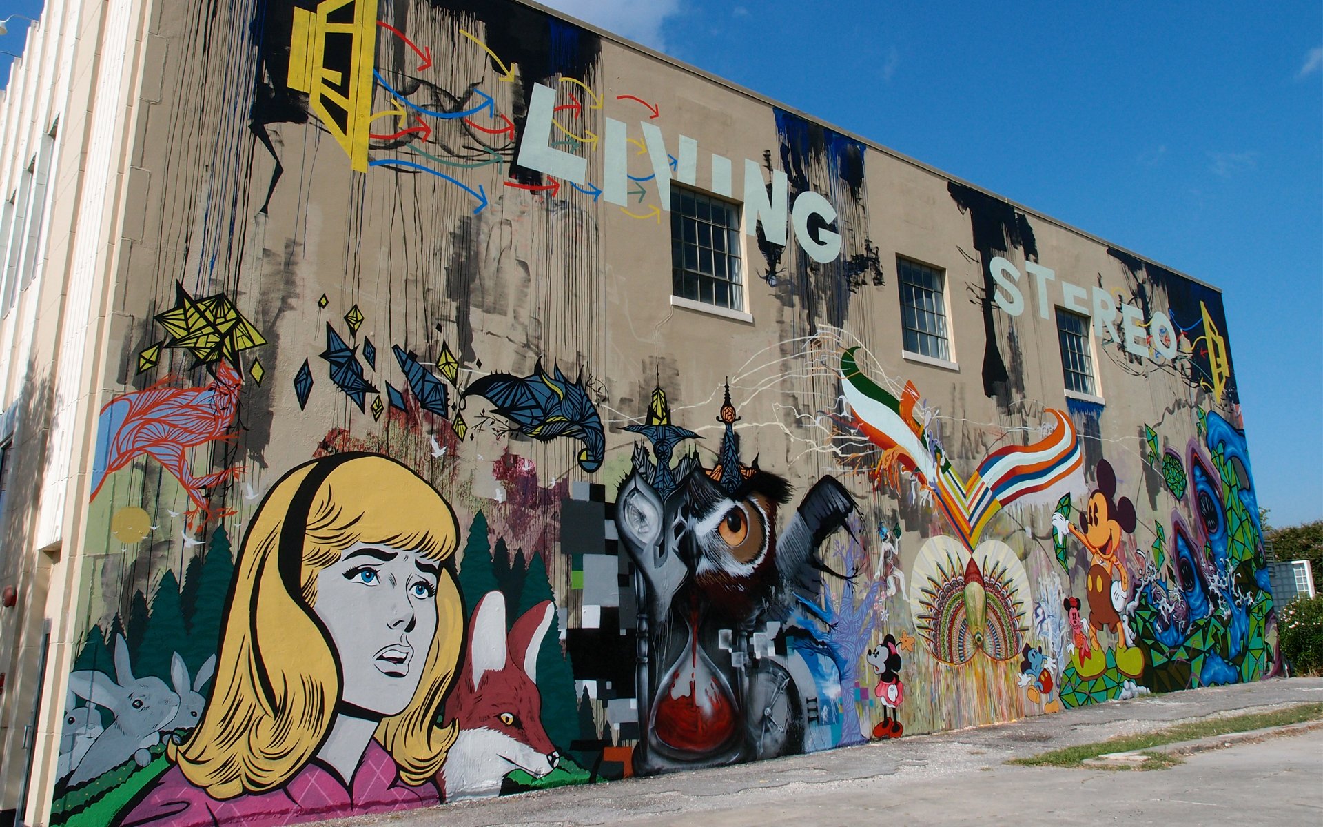 Das gebäude mit den darauf abgebildeten bunten graphitenDas Gebäude mit den darauf abgebildeten bunten Graphiten