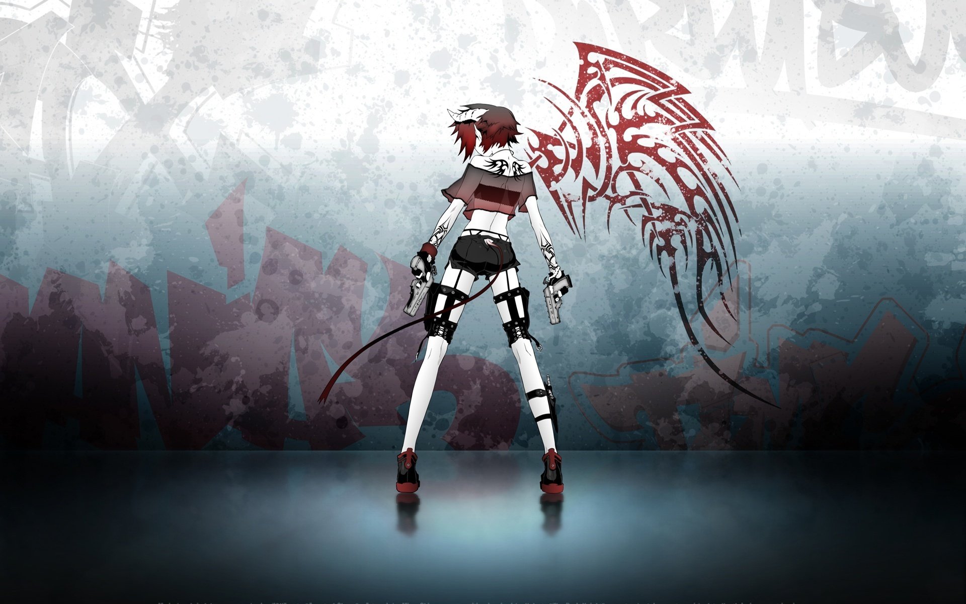 Mädchen mit einer Waffe in der Hand auf einem schrecklichen Hintergrund