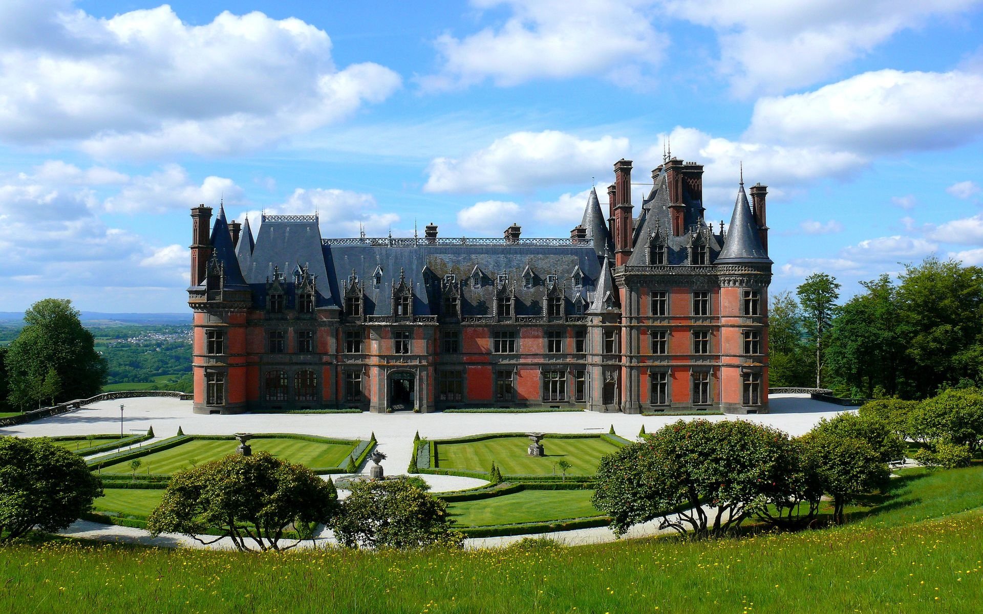 Rote tulpen und weiße gänseblümchen im garten. blaue gießkanne. grüner hintergrundRote Tulpen und weiße Gänseblümchen im Garten. Blaue Gießkanne. Grüner Hintergrund