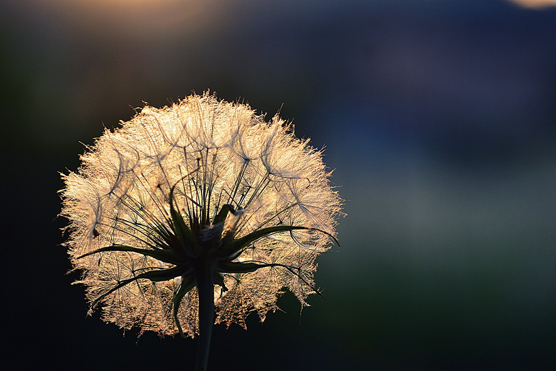 Der flauschige Löwenzahn wird wunderschön von den Sonnenstrahlen beleuchtet