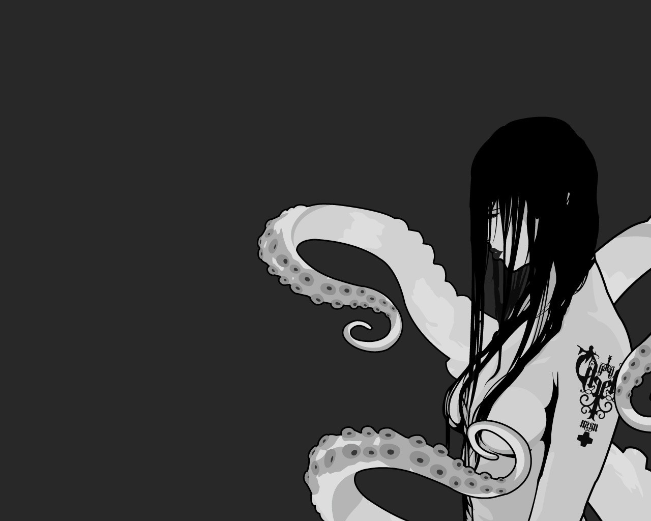 Minimalistische Vektor-Zeichnung eines Mädchens mit Tentakeln