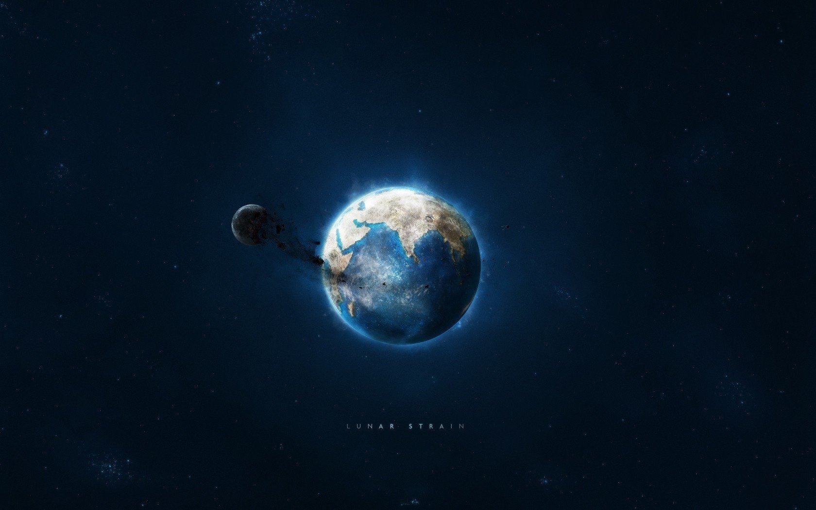 Schwarzer Raum durch Mond und Erde