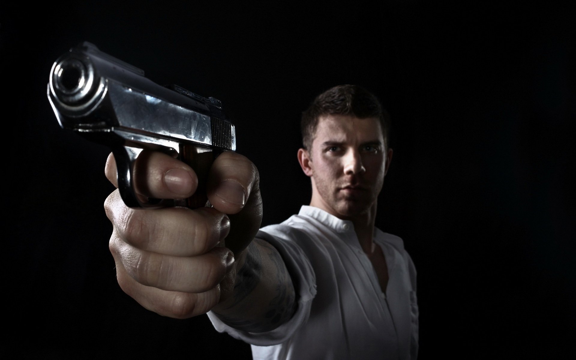 Ein kerl und ein mädchen auf einem foto mit einer waffeEin Kerl und ein Mädchen auf einem Foto mit einer Waffe
