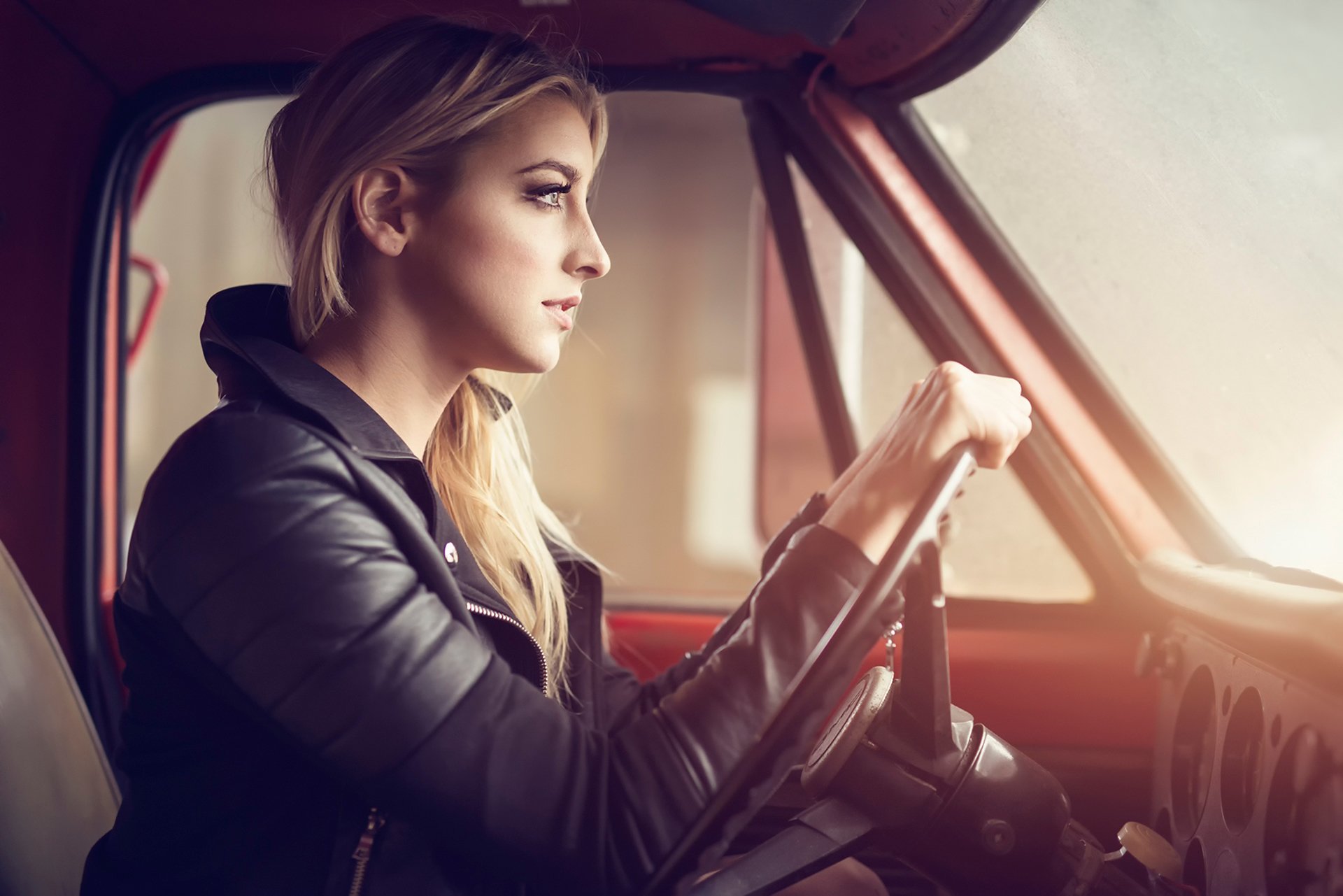 Vor dem hintergrund des himmels mit wolken posiert ein modell mit saftigen brüstenVor dem Hintergrund des Himmels mit Wolken posiert ein Modell mit saftigen Brüsten