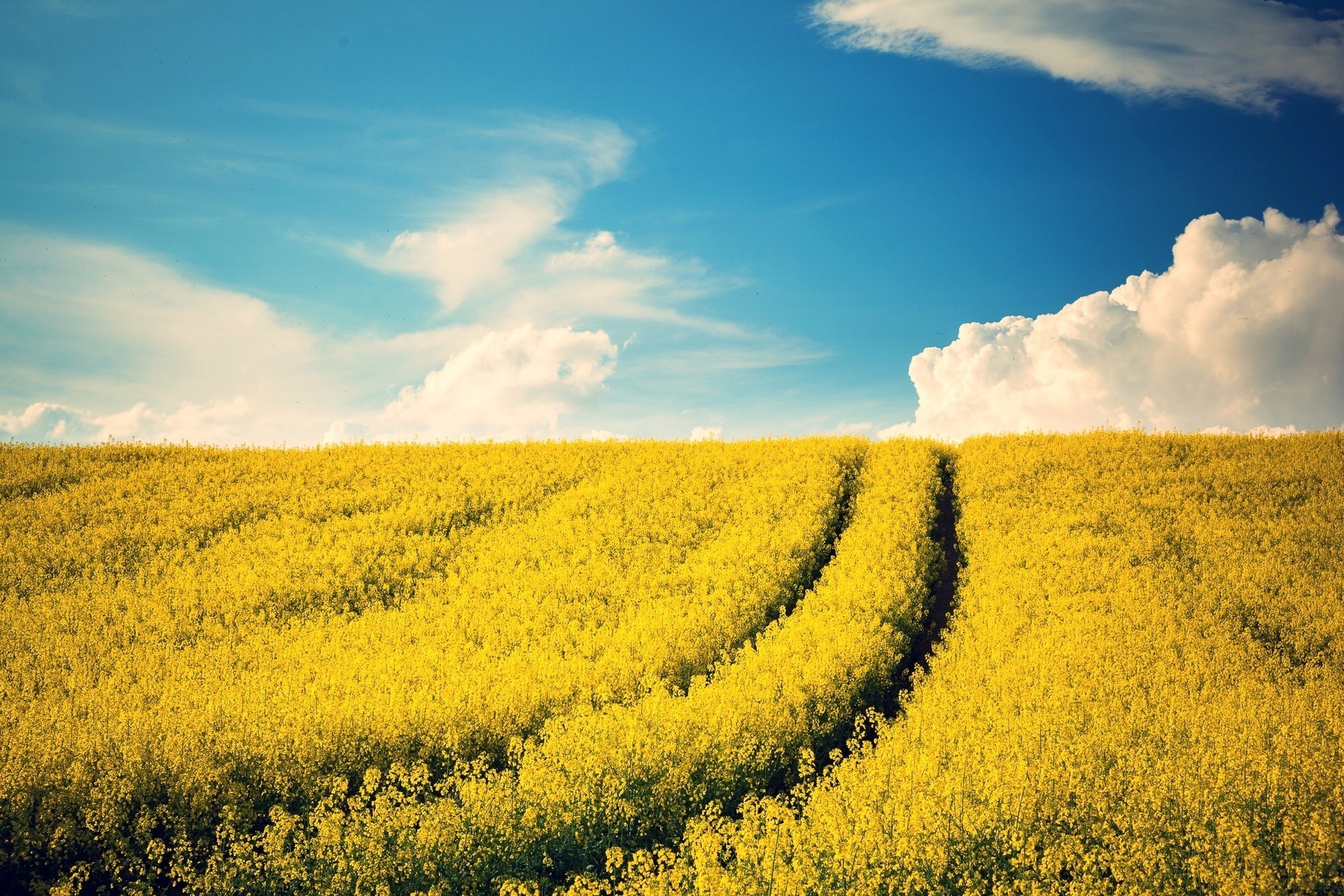 Ein Weg in den Himmel über das gelbe Feld