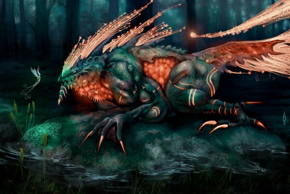 Mädchen-magier und mädchen-bogenschütze kämpfen gegen ein riesiges geflügeltes monsterMädchen-Magier und Mädchen-Bogenschütze kämpfen gegen ein riesiges geflügeltes Monster